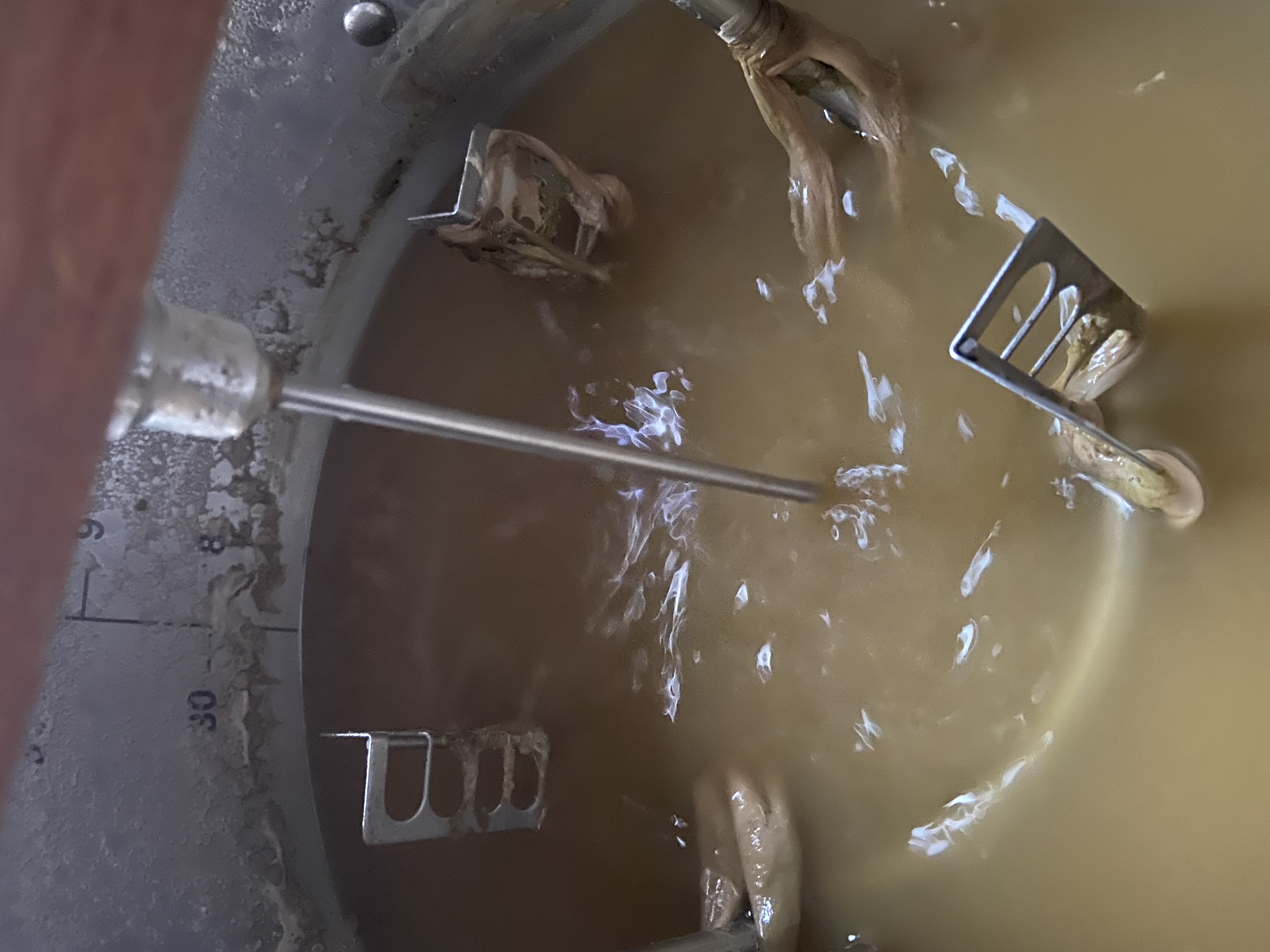 Eingemaischt wurde bei 45 °C. Bei 63 °C wurde der pH-Wert gemessen, welcher bei 6,0 lag. Ich hab dann 5 ml Milschsäure zugegeben und bin dann auf einen pH-Wert von 5,8 gekommen.