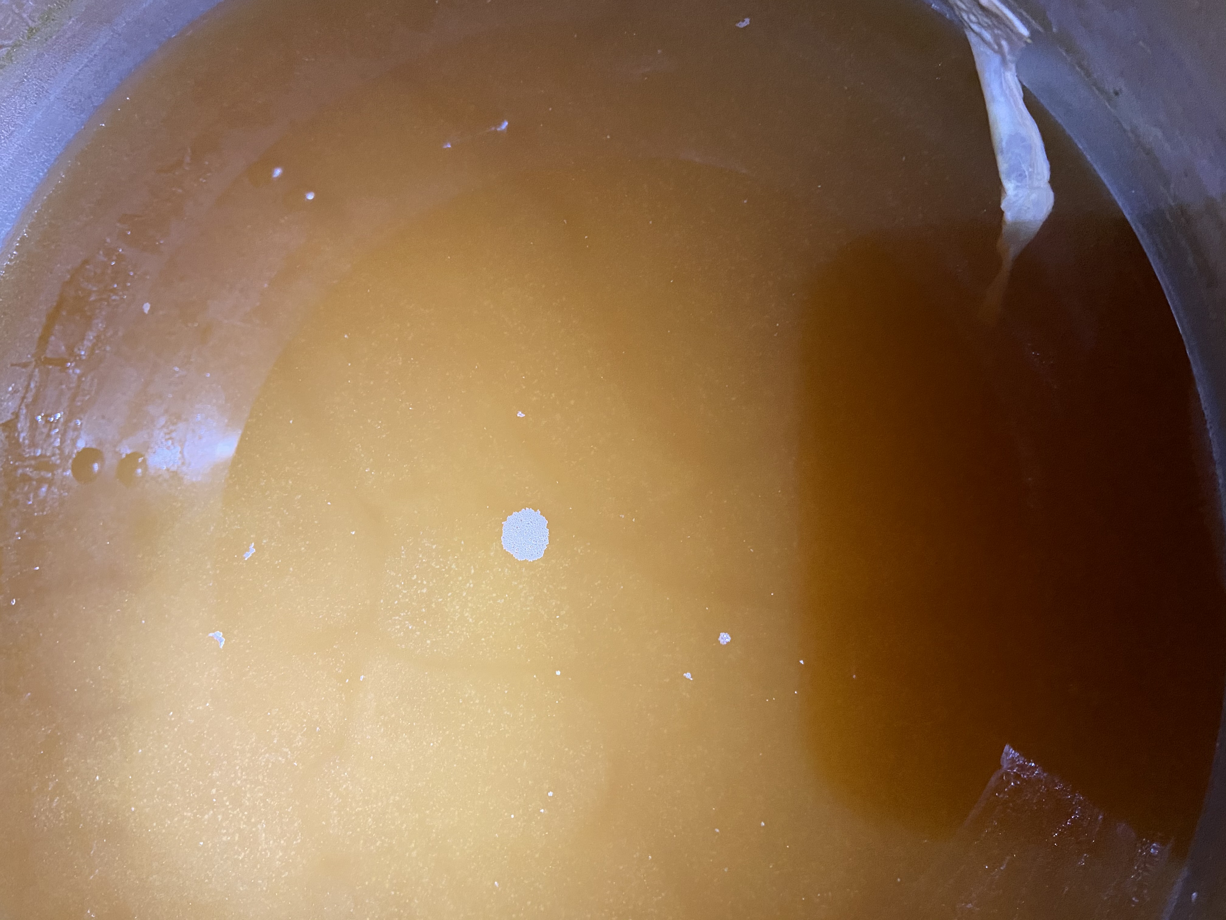 Die RA wurde mit CaCO3 angehoben, welches in dem VE-Wasser mit CO2 aufgesprudelt wurde. Uch hab die 3,4 g auf 2 Flaschen aufgeteilt, aber auch hier war in den Flaschen die maximale Löslichkeit überschritten. Im Topf selber war die Lösung dann klar