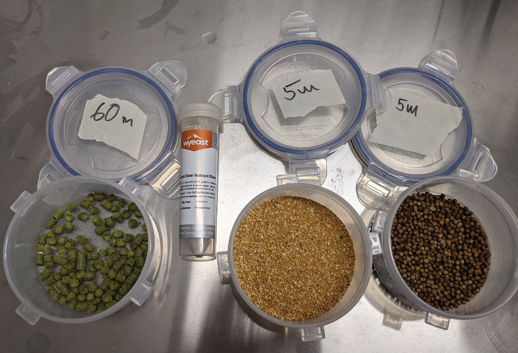 Mal sehen, wie dem Bier der etwas vollere Körper steht. Und wie die Gewürzgaben sich verhalten. Ich hatte am Vorabend 4 Koriander-Tees aufgesetzt (200ml, 5 Minuten kochen, gleiche Menge Koriander; 1. Roh, ganz, 2. Roh, leicht zerdrückt, 3. Getoastet, ganz, 4. Getoastet, leicht zerdrückt) und mich daraufhin für Variante 1 entschieden. Geschmacklich machten ganz vs. zerdrückt jeweils keinen Unterschied, lediglich die Intensität wurde erhöht - aber vielleicht auch weniger berechenbar, daher lieber ganz und ggfs. die Menge erhöhen. Bei roh vs. getoastet ging der Geschmack von zitrus-frisch zu orangig-weihnachtlich über (grob beschrieben). Da ist tatsächlich beides sehr gut - ich habe mich für ersteres entschieden, weil ich die frischere Note wollte. Mal sehen, mal sehen... Die Orangenschale hat ein richtig geiles Aroma. Ich hoffe das kommt so durch.