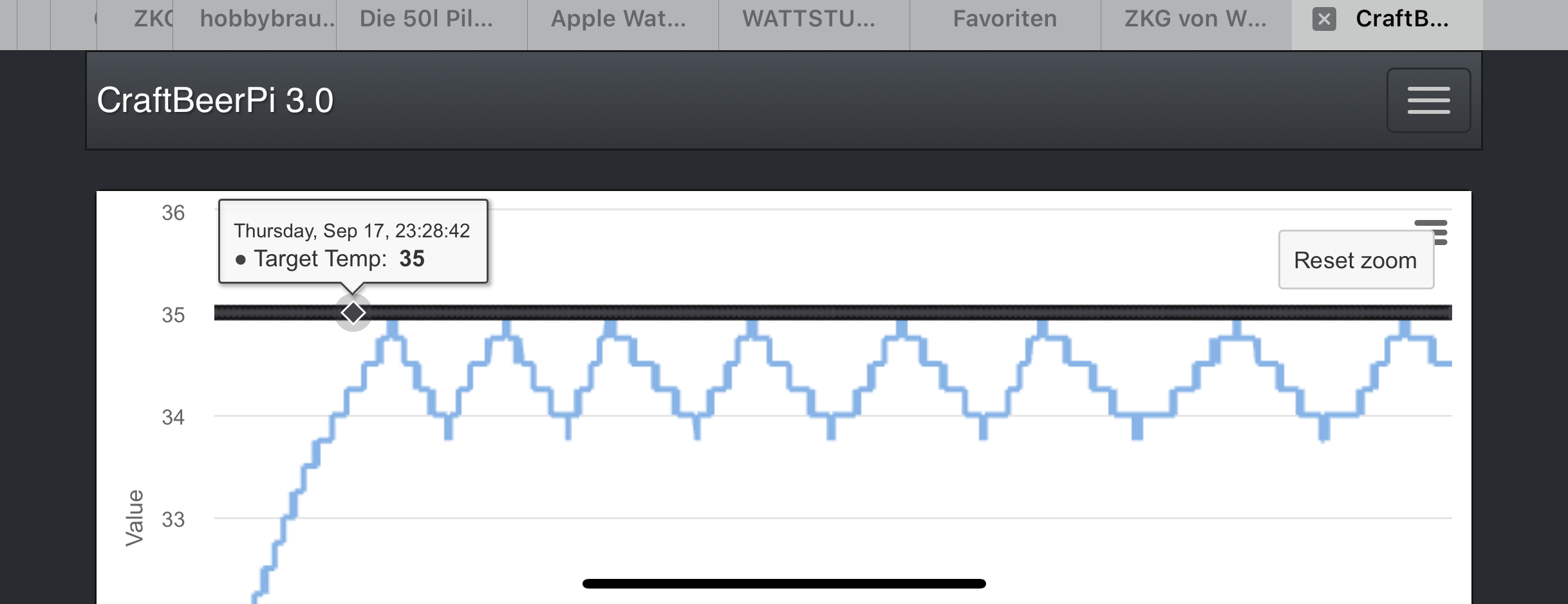 Der Vorteil dieser Lösung für mich: Ich nutze für die Wärmeübertragung die große Oberfläche des Kühlmantels des ZKG. Muss also keine Sorge haben, dass ich punktuell eine zu hohe Temperatur habe und die Hefen "brate".