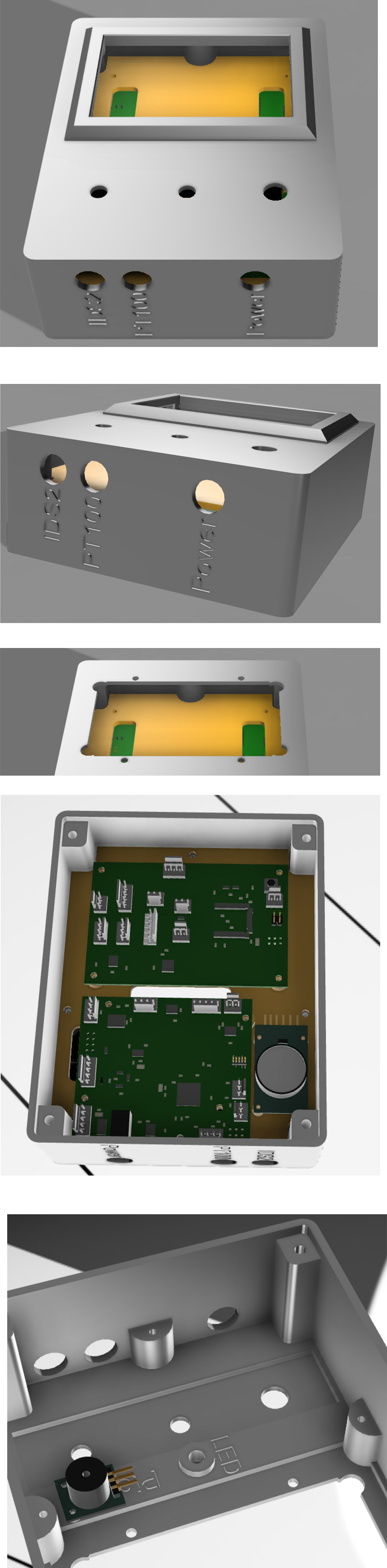 Die Dicke ist 3mm. Es ist notwendig, das Display entweder mit Senkkopfschrauben festzuschrauben oder in das Gehäuse einzukleben. Der Rahmen kann mit Doppelklebeband oder UHU hart befestigt werden. Da der Rahmen an der linken Seite eine Unsymetrie hat, würde ich die Aussparung für das Display 7mm nach links setzen, dann ist der Rahmen und das Display mittig im Gehäuse.