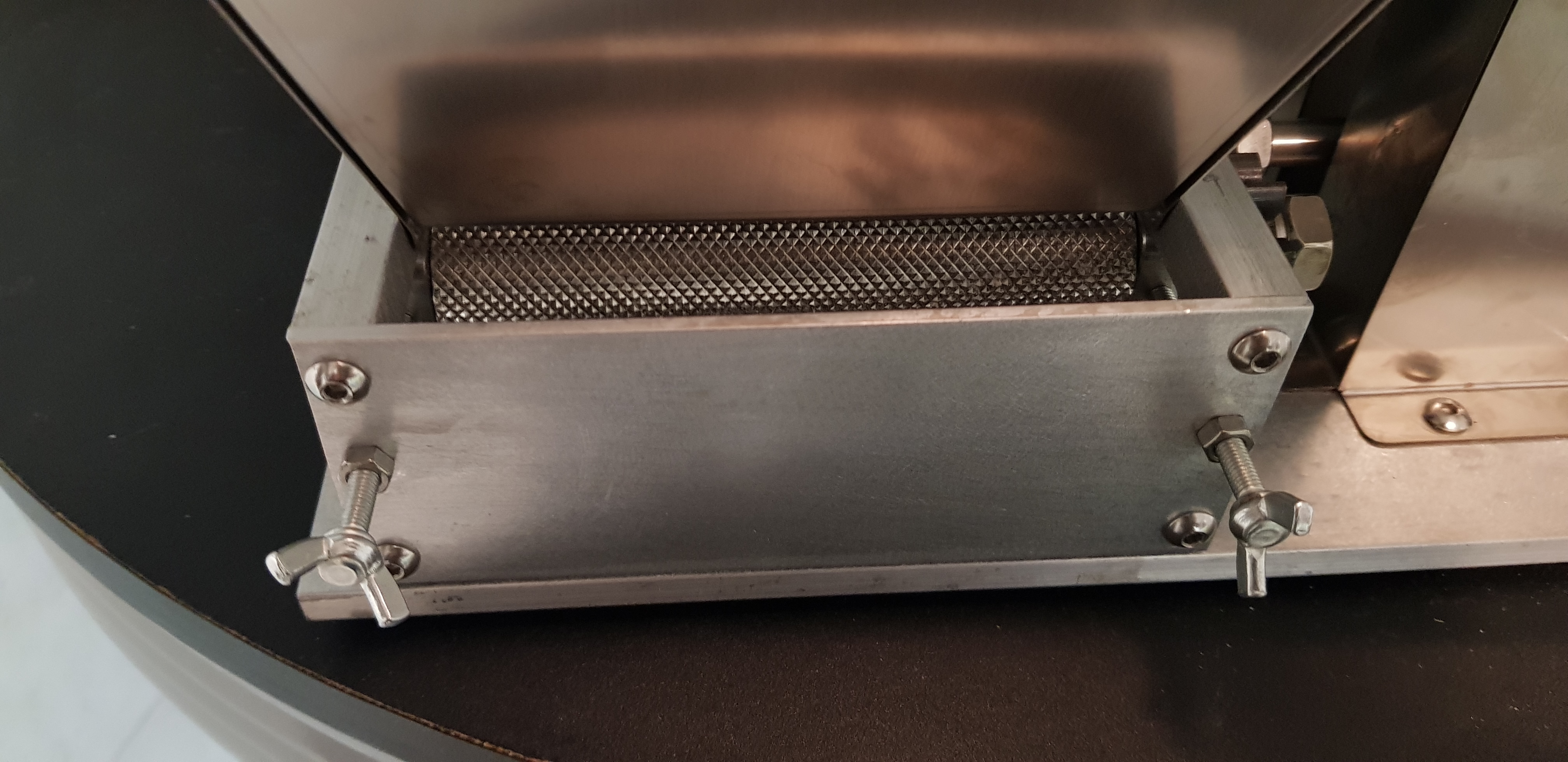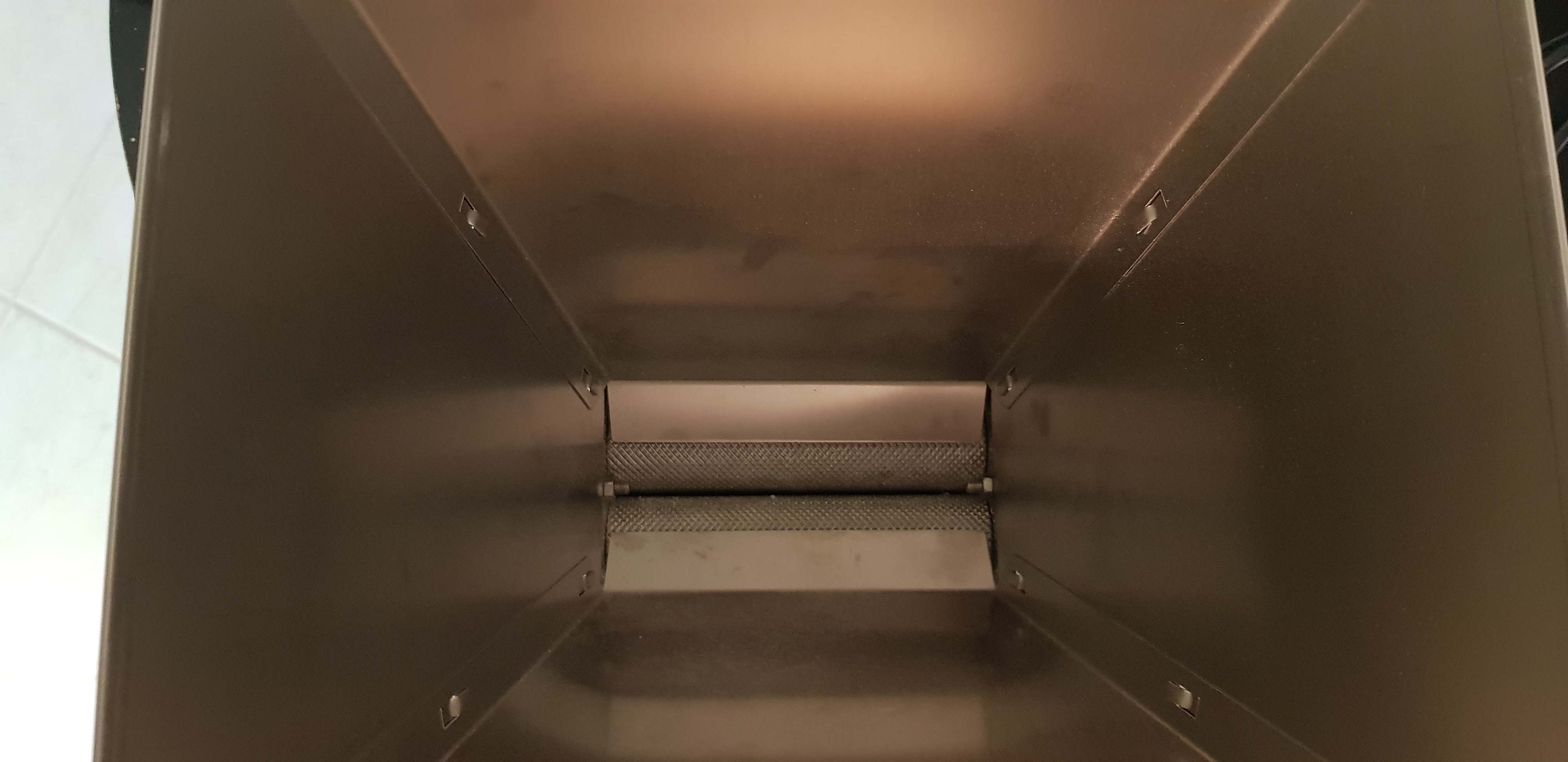 Walzen ziehen souveräne Rohfrucht durch. Super Quetschergebnis, kein Mehlanteil
