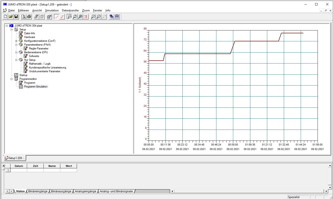 Beim Hersteller gibt es eine Software mit der man den Regler parametrisieren kann. Diese Software kann eine "Programm-Simulation" darstellen.