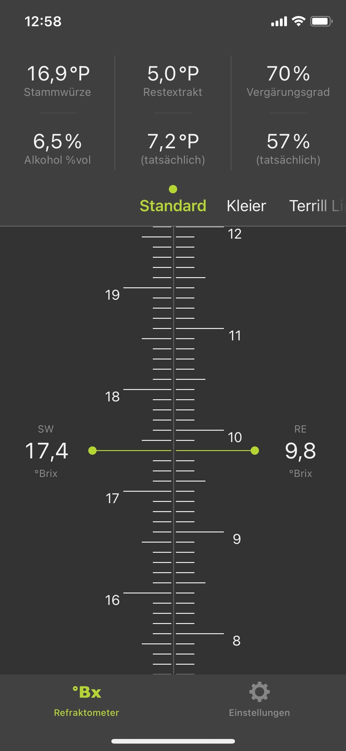Refraktometer-Rechner sollte also stimmen. Seit 2 Tagen ändert sich nichts mehr am Messwert. Ich denke da passiert auch nichts mehr...