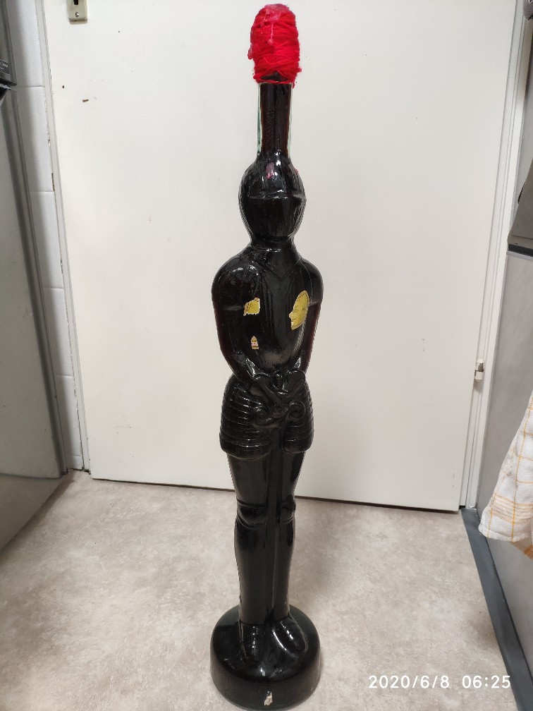 Daneben noch eine 3 L Weinflasche in Form eines Ritters, die mir ein freundlicher älterer Herr geschenkt hat, weil sie zu schade für den Flaschencontainer gewesen wäre, zurzeit und erstmal noch ein paar Jahre mit triple-Stout gefüllt..
