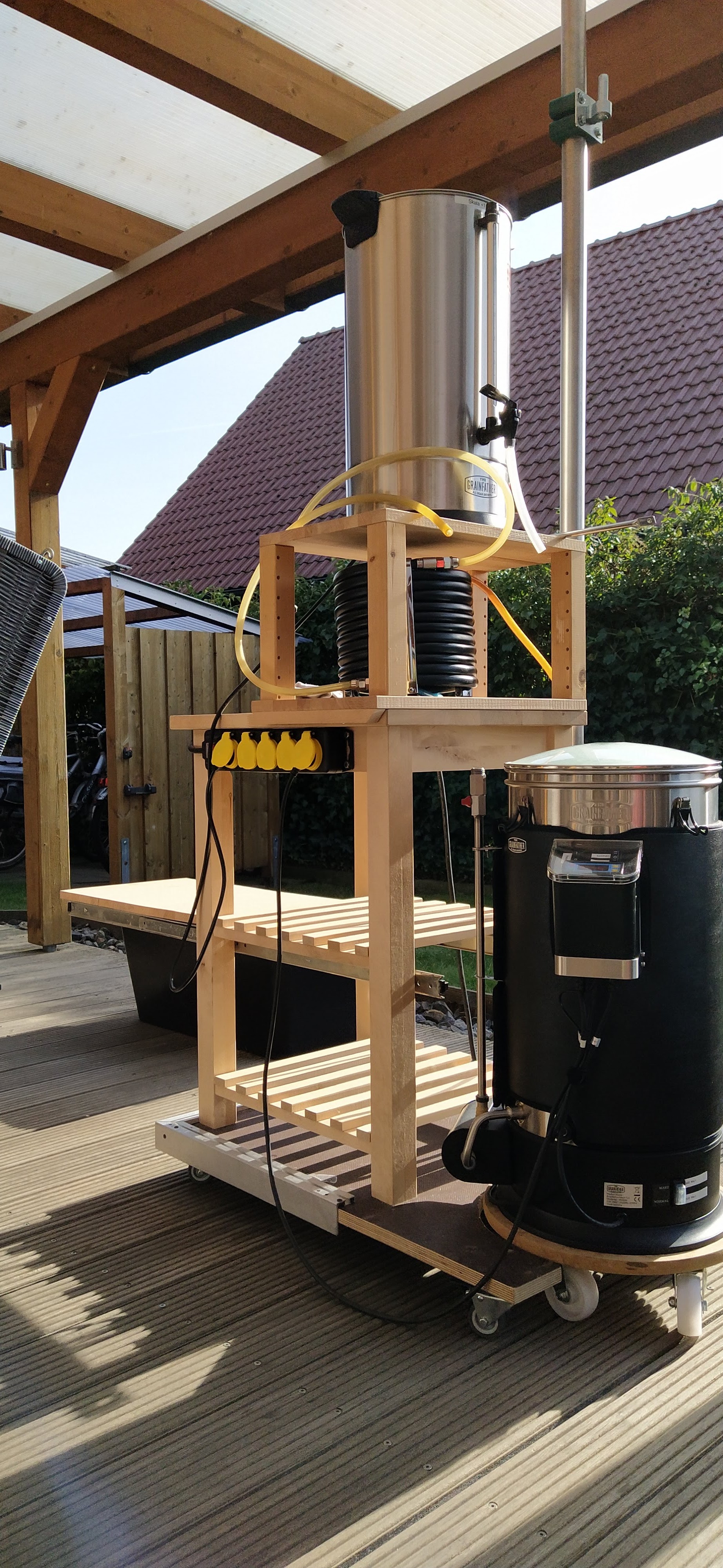 Nachher zum ersten mal mit Würzekühler (Tauchwendel), mal schauen wie schnell das dann geht, hab nur ne Dichtigkeitsprüfung gemacht, keinen vollen Kühl-Testlauf.