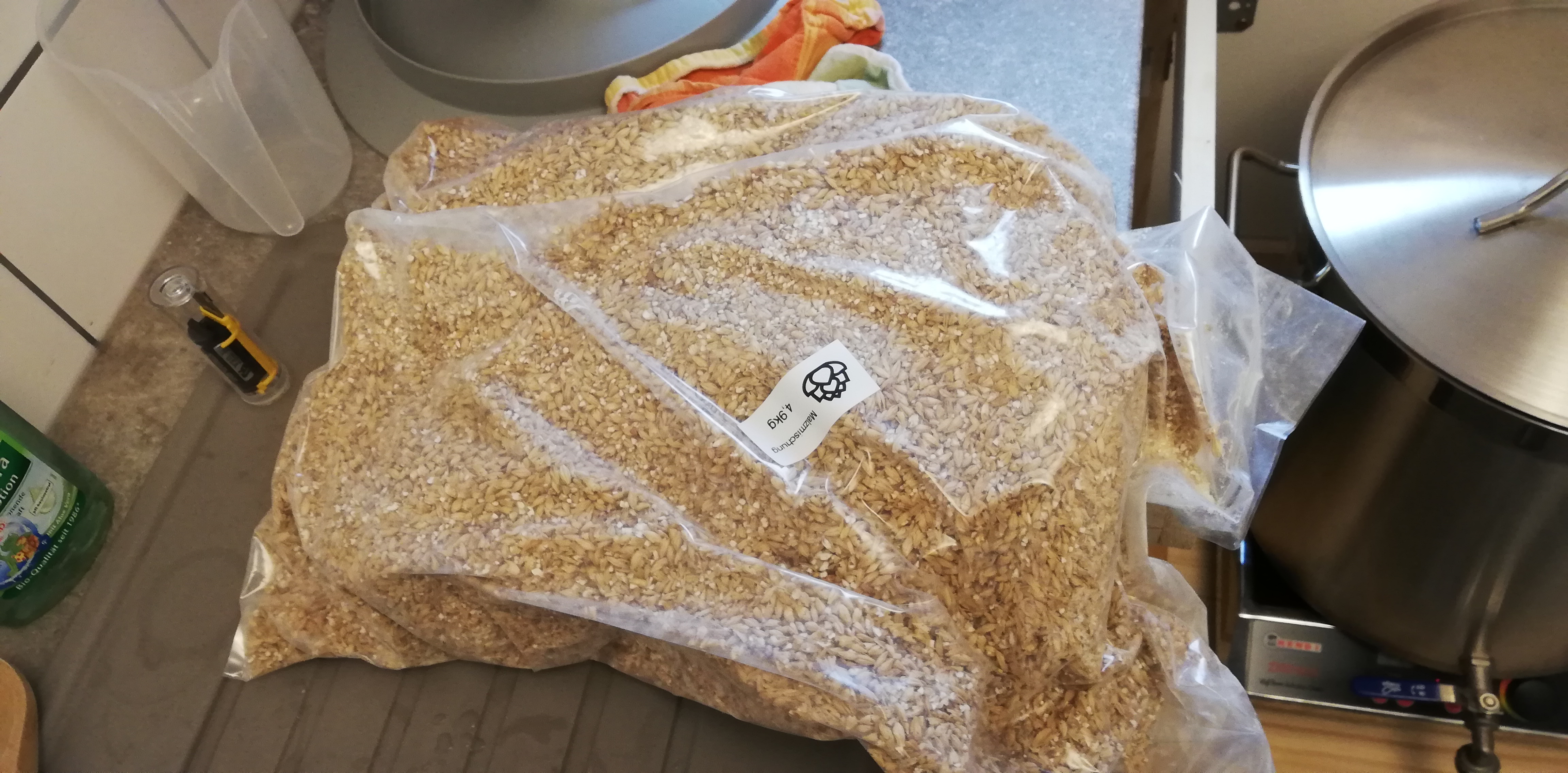 Nach einer 20minütigen Läuterruhe wurde geläutert und insgesamt 18 Liter Nachguss gegeben. Das waren leider etwa 1,5 Liter zu viel, wie sich später rausstellte.
