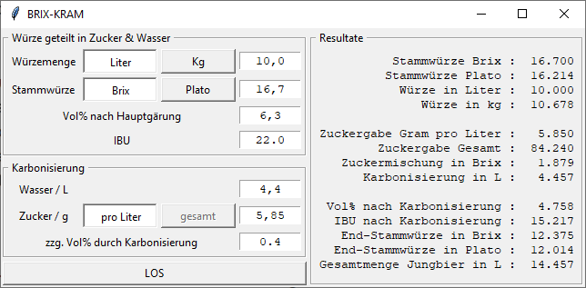 Am Beispiel eines Weizens sind dass bei 10,1 gr/Liter (6,5gr Co2/L) Zucker eine Erhöhung um 0,6% vol.