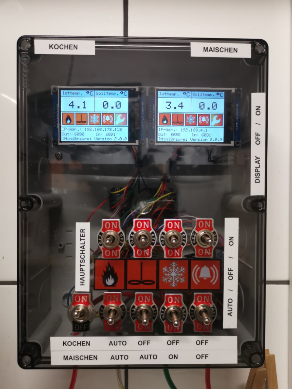 Ziel ist beide Heizstäbe und die Pumpe bzw. das Rührwerk automatisch zu schalten :-)