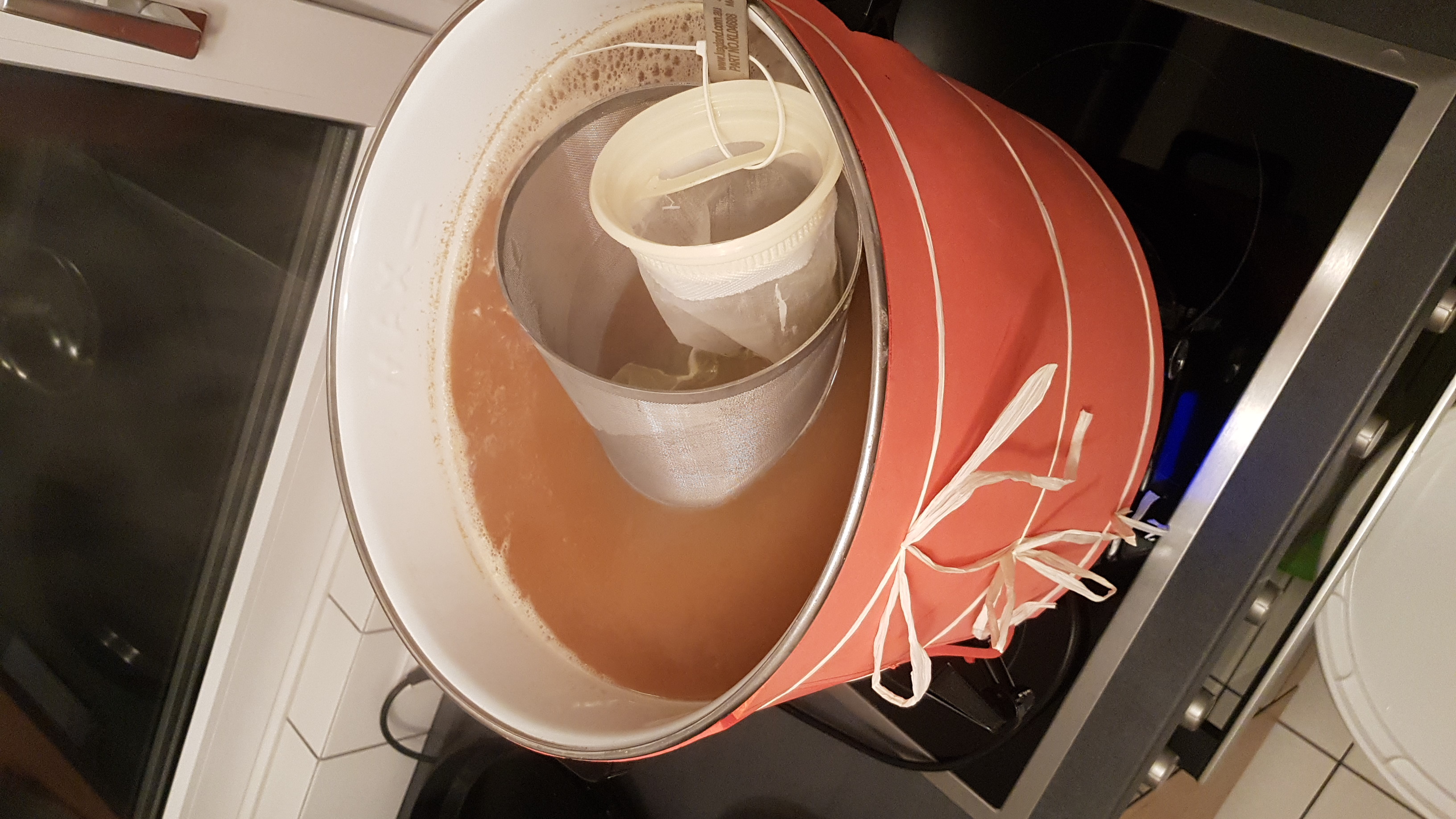 2. Sud war dann schon auf Hendi mit zwei mal 17 Liter Töpfe. Einer zum Maischen/Läutern, der andere zum kochen. Der zweite Brautag war auch viel entspannter und das Jungbier schmeckte schon richtig gut. Das Bier befindet sich gerade in der Nachgärung und ich bin sehr gespannt. Gebraut wurde fast das gleiche Rezept auch mit ansatzweise dem gleichen Fehler. Stammwürze war wieder zu hoch (evtl ein wenig zu viel Malz in den Topf gerutscht)