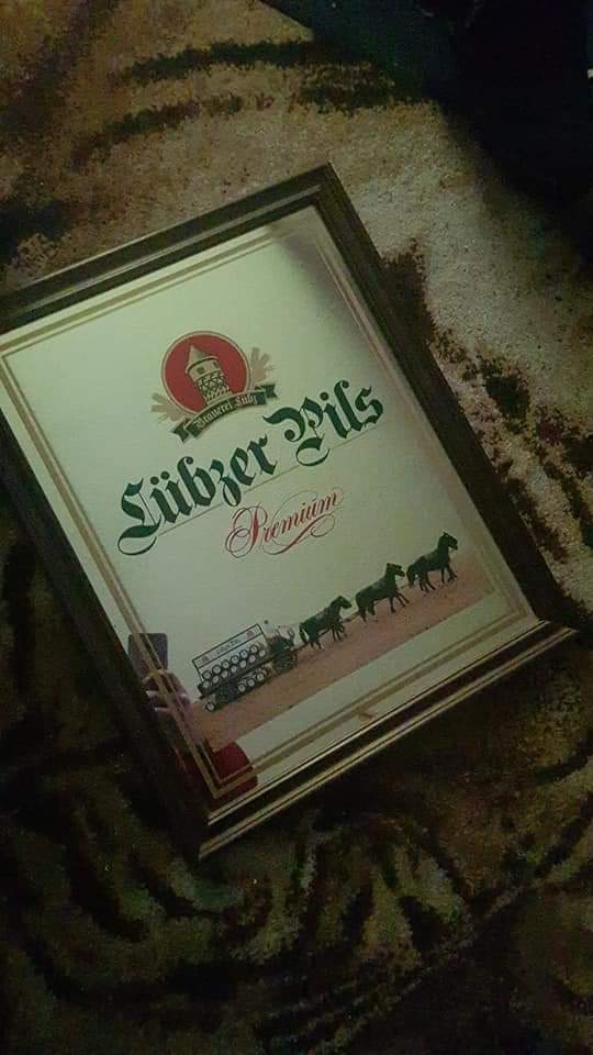 Ich habe ein Krombacher Werbeschild siehe Foto, sowie ein eingerahmtes Bild/Spiegel von Lübzer.