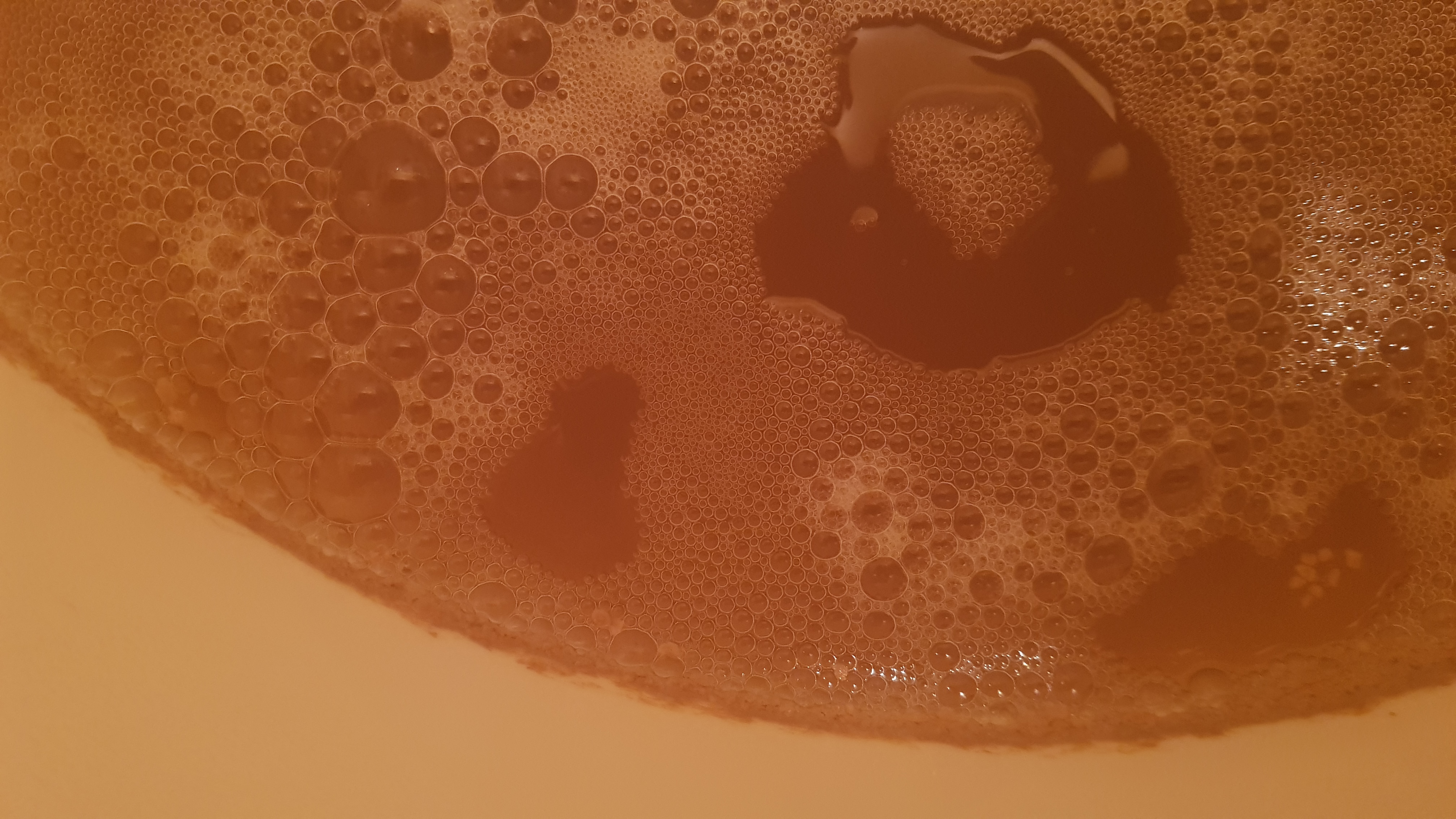 Auf jeden Fall sind da noch Bläschen drauf. Auch die können nur durch eine Temperaturerhöhung kommen, aber im Zweifelsfall lieber nicht Abfüllen.