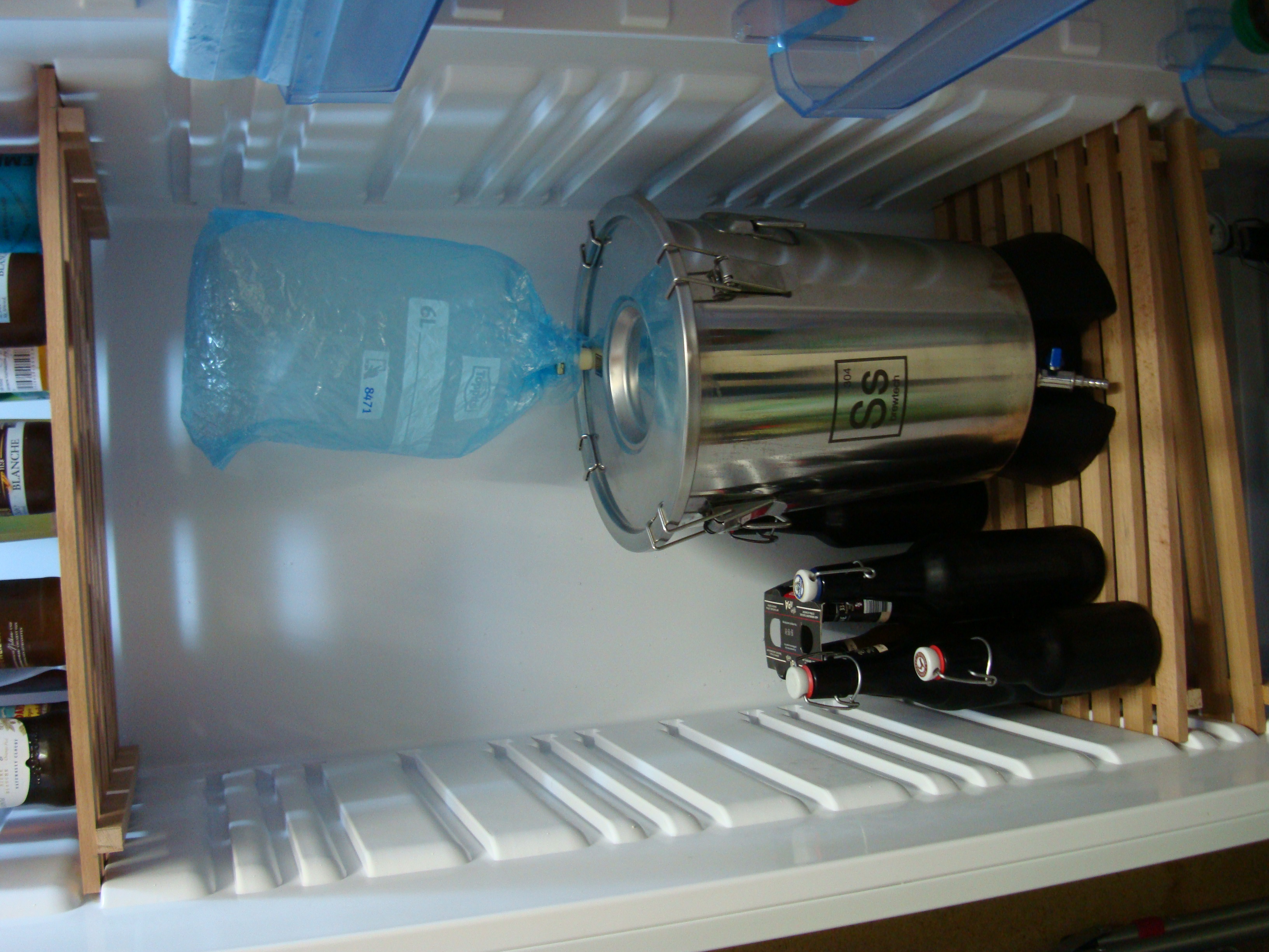 Zwei Tage später wurde das Ganze in den Kühlschrank gestellt und ein Sack mit CO2 angeschlossen.