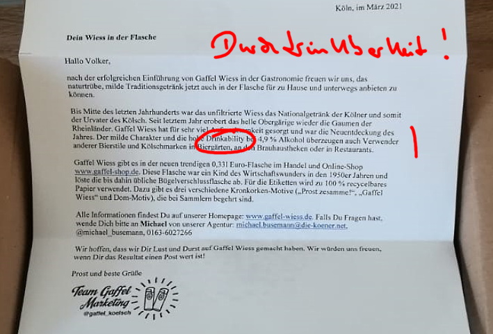Die Gaffel-Brauerei hat letztes Jahr ein Wiess auf den Markt gebracht und dieses Jahr hat sie es auch auf Flaschen gefüllt: