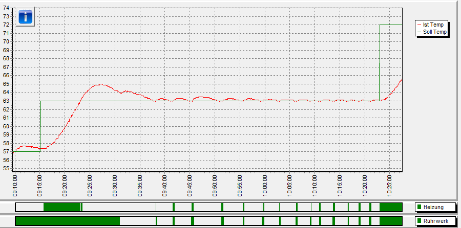 Falls es dann immer noch zu große Überschwinger gibt, dann den Bereich weiter erhöhen. Falls du dann weitere Hilfe brauchst wäre ein Logfile oder die Grafik hilfreich. Ausserdem die verwendete Hardware. U. U. solltest du auch einfach die Leistung der Heizung zurück drehen, wenn du deutlich schneller wie 1K pro Minute heizst.