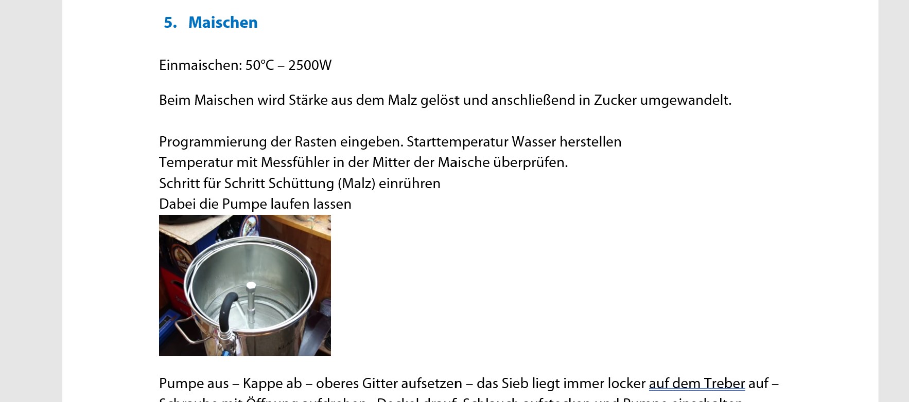 Einmaischen, bei 60°C - ergibt ca. 57°C, ca. 10min