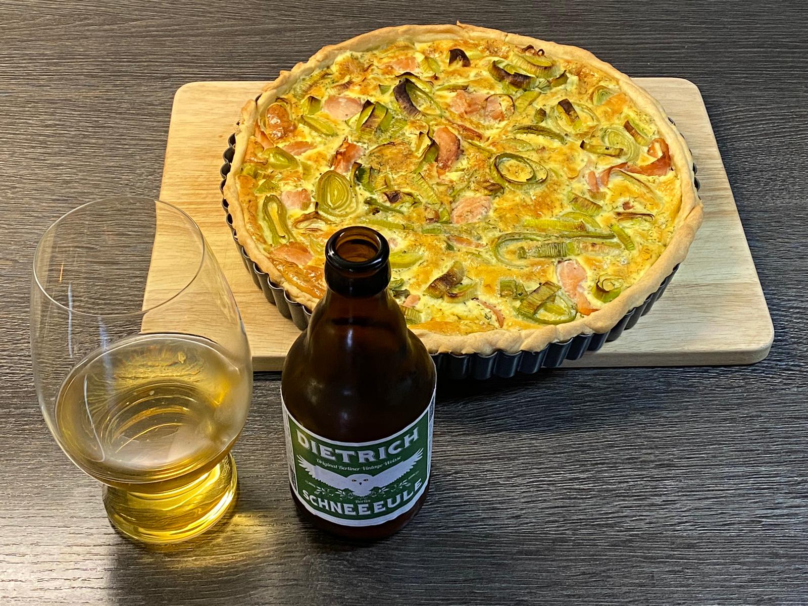 Hier gibt es heute Lachsquiche und dazu eine Dietrich Vintage Weisse. Sehr lecker.