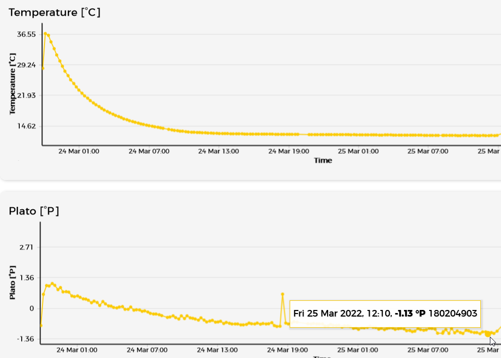 ....und dann noch die Info, dass brewbrain nicht den Platowert auf die Temperatur anpasst. Das kam mir zwar als Erklärung für die Änderungen des Platowerts auch kurzzeitig in den Sinn, ich wollte es aber nicht wahr haben bei einer Firma die sich den Slogan "We put the brains in brewing" hat. Das habe ich als Grundfunktion der Software erwartet. Darüber hinaus: Die Abweichung des Platowerts (bei Referenz 20°C = 0°P) müsste bei fallenden Temperaturen doch steigen und nicht sinken ?.