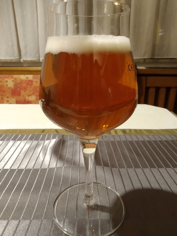 Mein Standardbier. Ich bin verwundert, das es trotz S-33 so klar ist. Die Hefe sedimentiert eigentlich extrem schlecht.