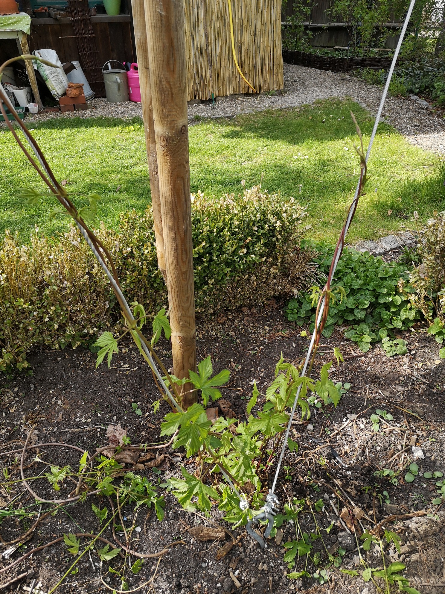 Die 3.... 4 Triebe wachsen an einem Draht hoch.