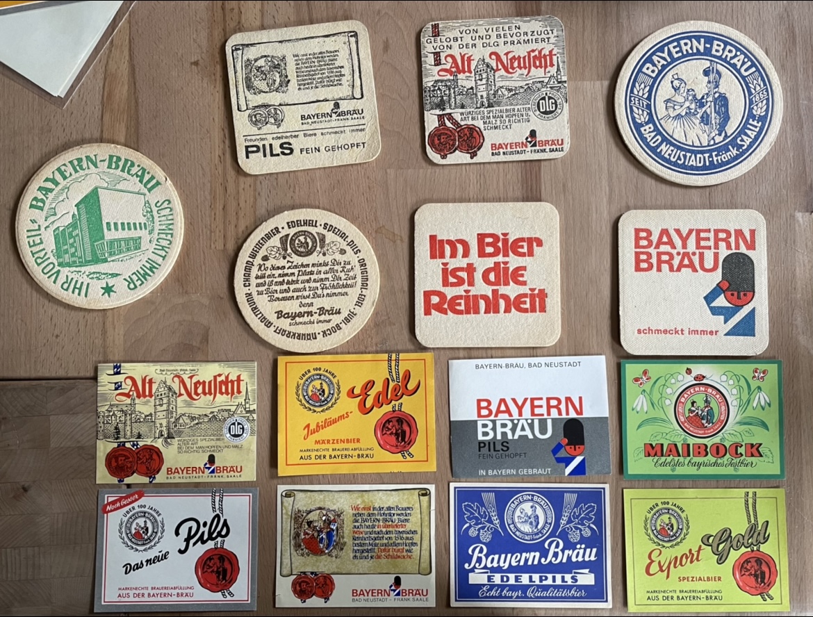 Bin ich doch gleich mal dabei. Ich habe etliche Etiketten und Filze der Bayern Bräu aus Bad Neustadt. Von 1856 bis 1980 wurde hier Bier gebraut. Auf dem Bild zu sehen ist die Altstadt mit dem Hohntor.