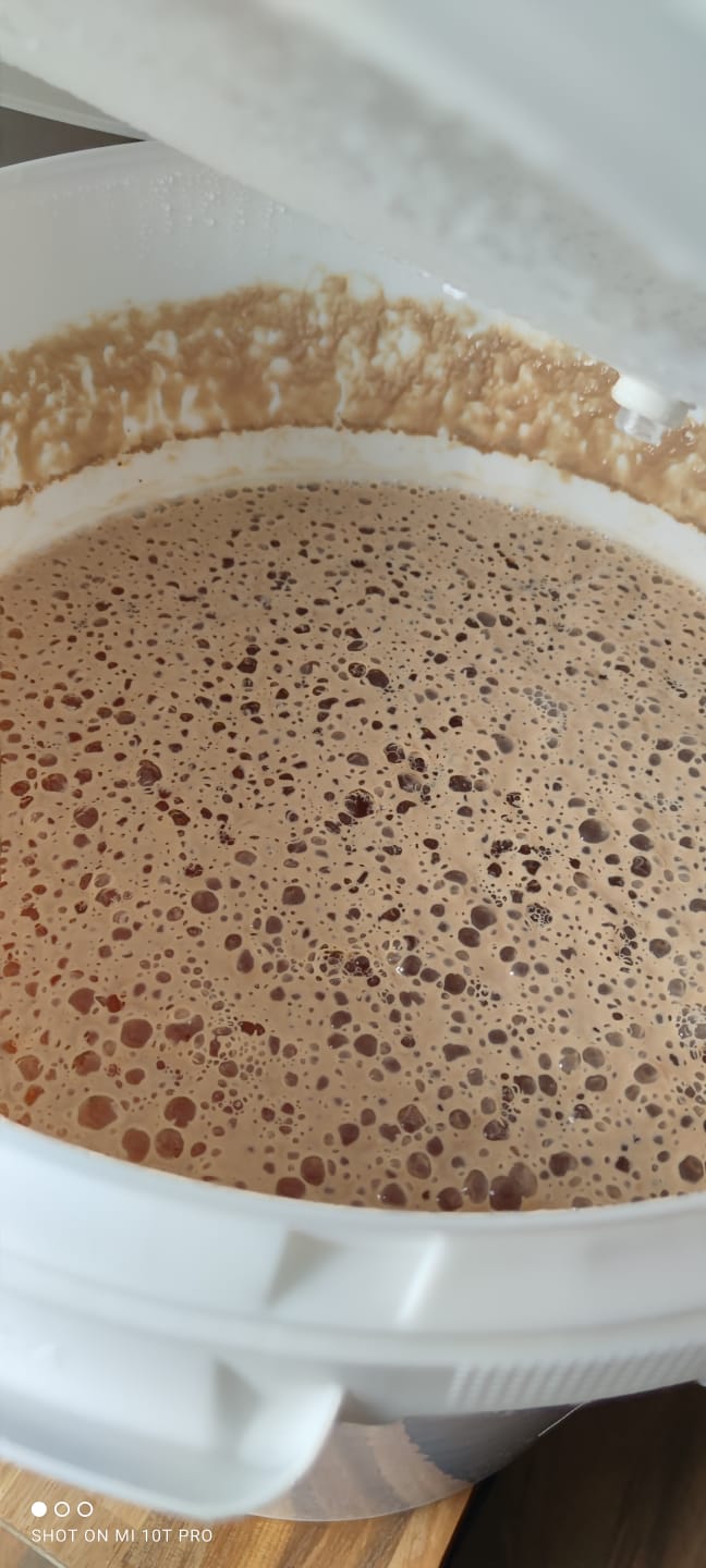 Vor 8 Tagen angesetzt. Nach 24h waren die Hochkräusen dann schon fast wieder durch. Gestern habe ich umgeschlaucht, und es war immer noch eine Kräusendecke drauf. Sie ist aber bereits bei 77% angelangt und anscheinend noch voll dabei: Das Jungbier war noch unglaublich Hefetrüb. Geruch ist ok, leicht Acetaldehyd, wundert mich jetzt aber nicht wirklich.
