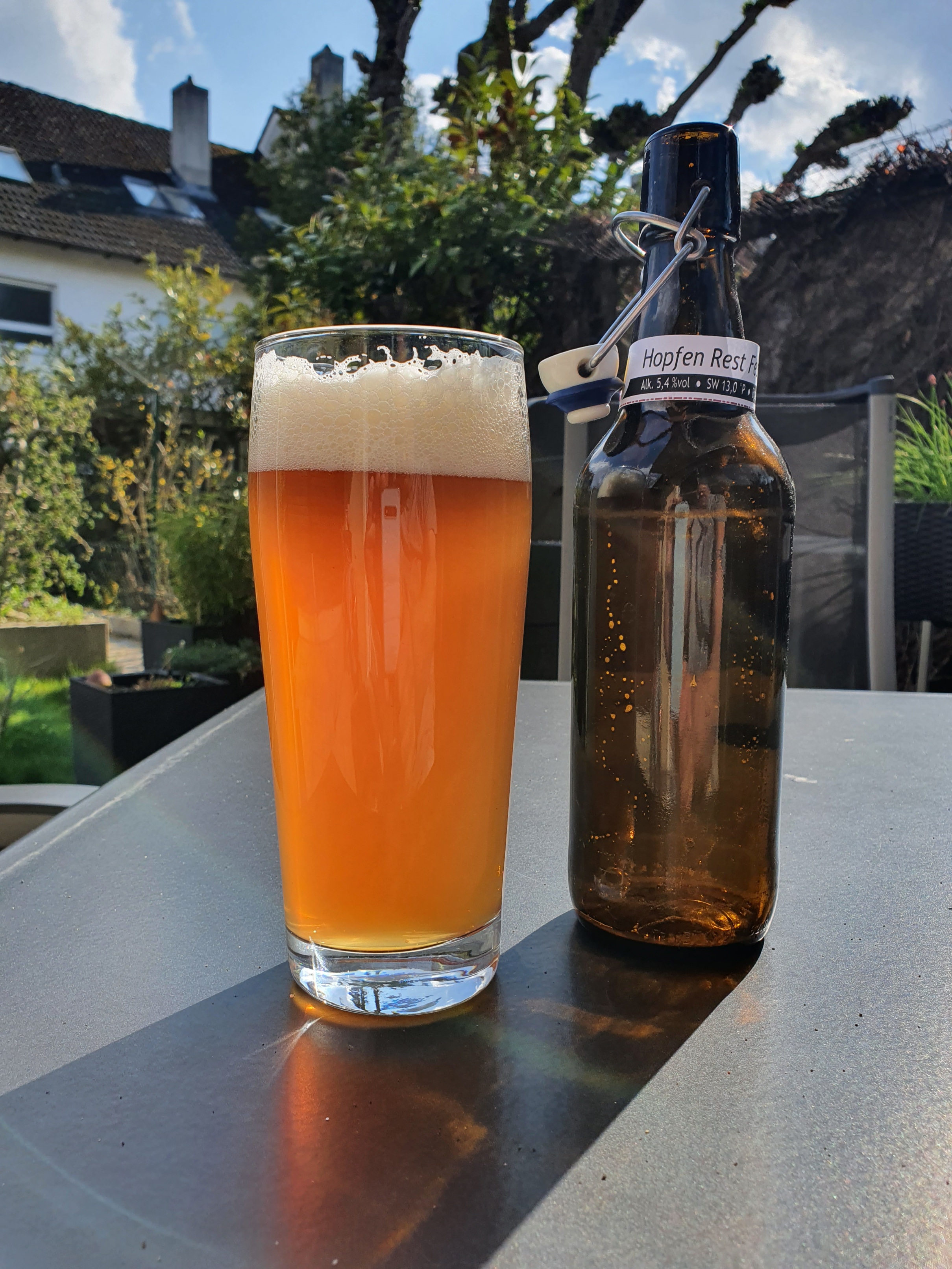 Hopfenrestfest. Fränkisches Keller nach dem Rezept vom Braukurs im Hopfengarten in Bamberg. Nur den Hopfen etwas geändert wie der Name schon vermuten lässt.