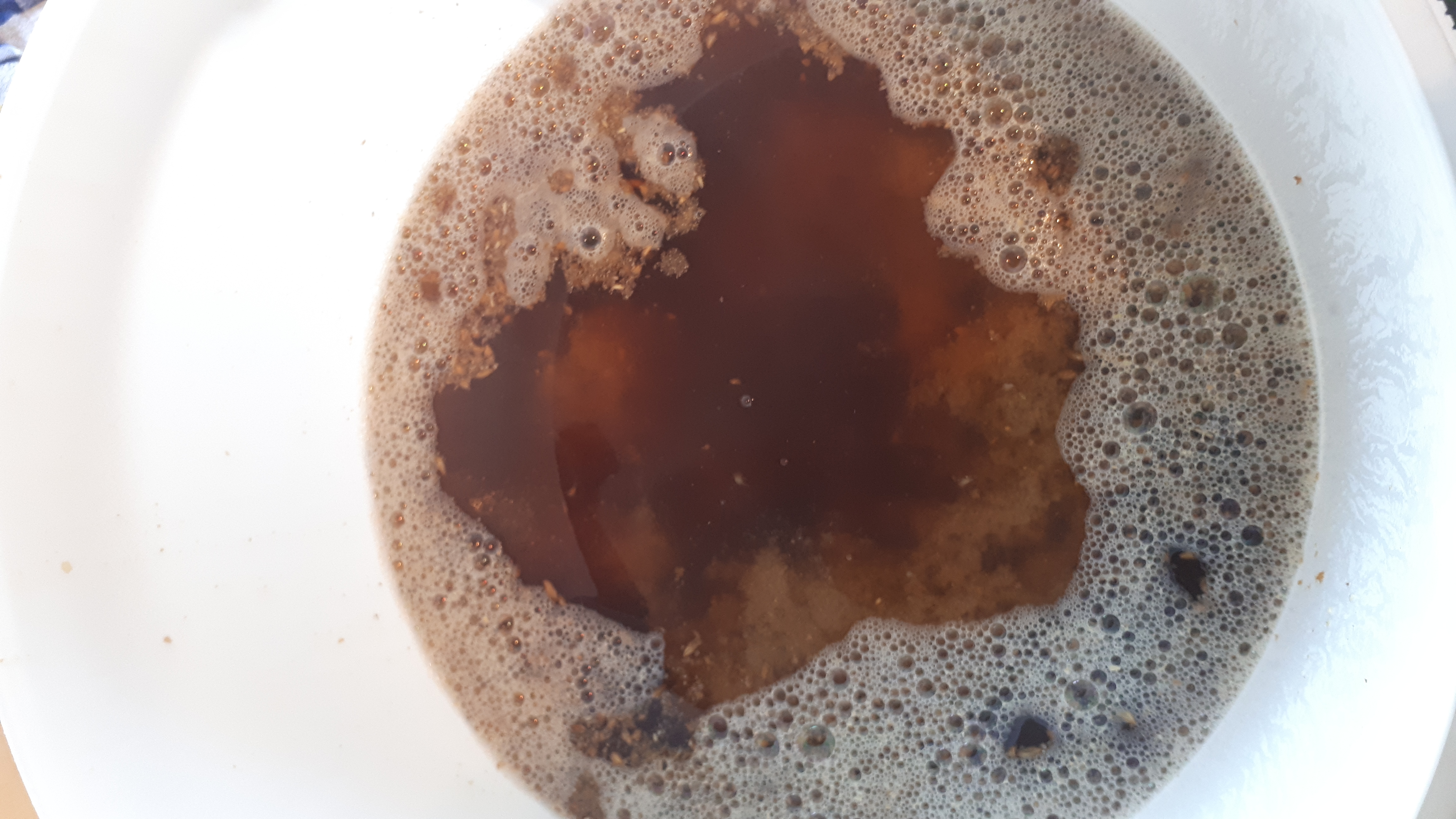 Um den Unterschied zwischen "Jod Negativ" und "Jod Positiv" zu sehen habe ich einmal kurz nach dem Einmaischen eine Probe gezogen:
