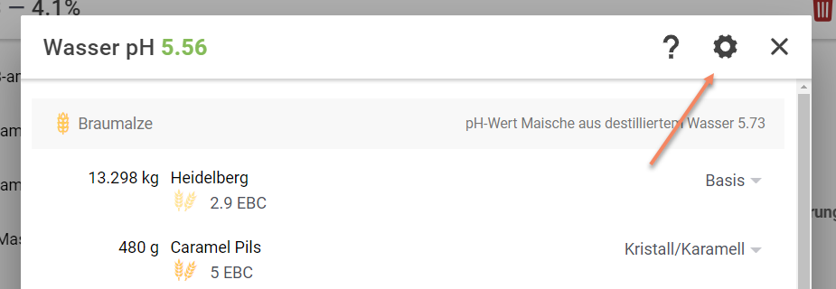Die Säure gibst du etwas weiter unten ein. Oben wird dir der resultierende Maische pH "live" angezeigt, wenn du die Säurenenge anpasst.