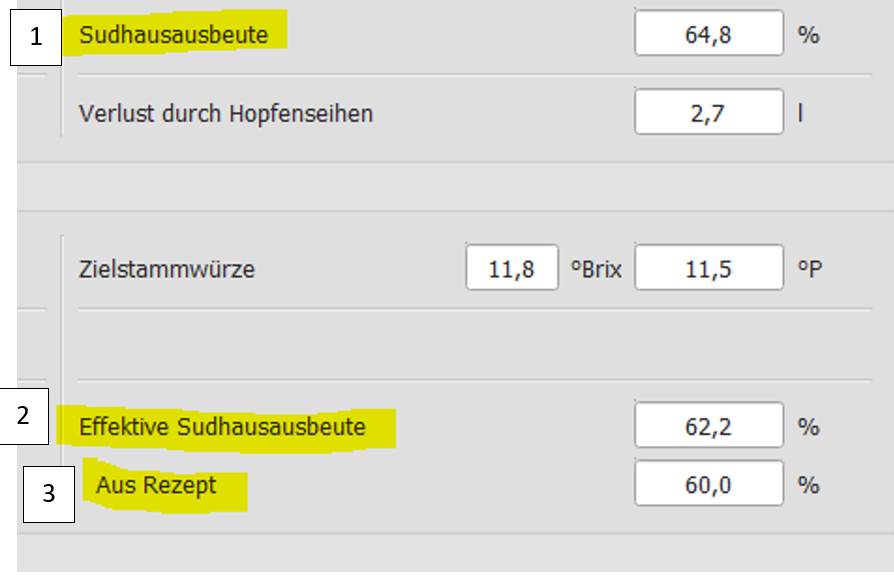 Was hat es dann mit 1. Sudhausausbeute (Bild 64,8%) zu tun? Dieser Wert ist redundant oder falsch benannt.
