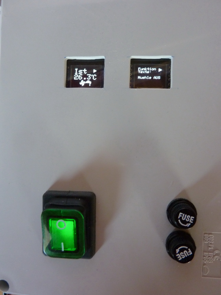 Zusätzlich 4 kleine OLED´s, 3 DS18B20 und ich schalte mit SSR´s die Lasten (Hendi und Rührwerk, Mühlenantrieb, Motorklappe für die Malzeinbringung) - geht natürlich auch mit Relais.