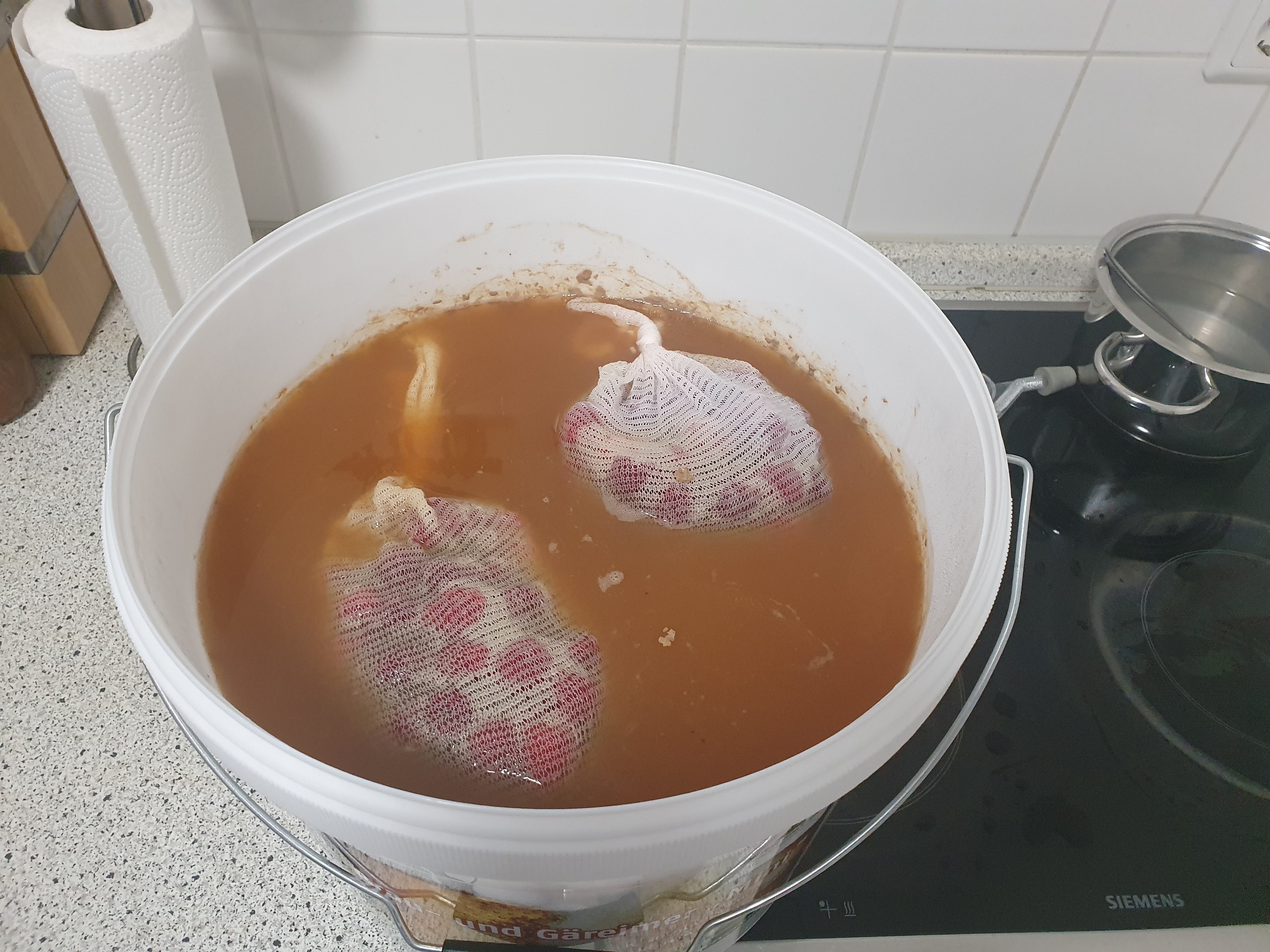 Gerade war ich am Kühlschrank, die Kräusen stehen bei 25l stellenweise am Deckel des 33l-Eimers an