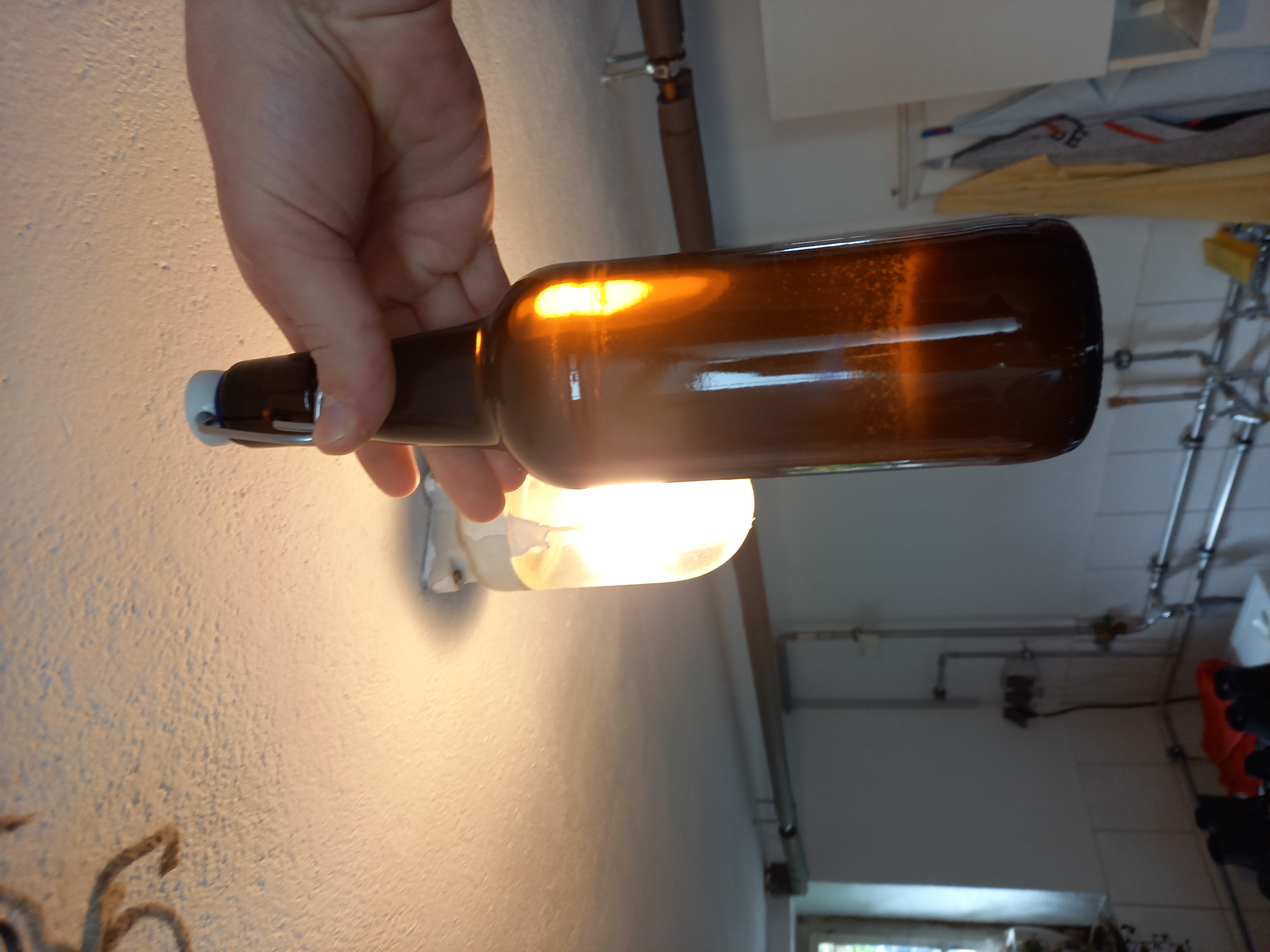 Klar, aber das bleibt kompakt mit der Hefe im Gärfass. Das gelangt nur in die Flasche, wenn was sehr schief geht.