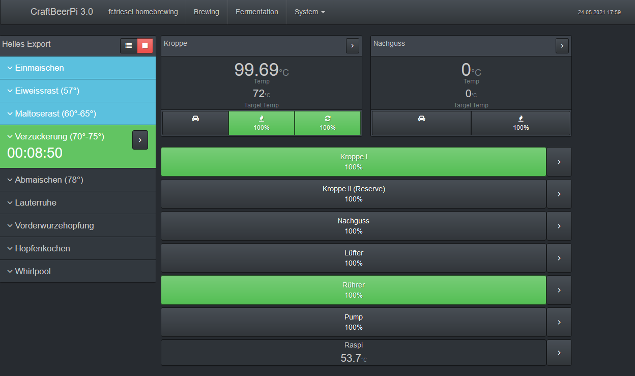 Sehr schöne Anlage und ich bin schon auf die Erfahrung vom ersten Brautag gespannt. Hast du Optimierungsbedarf ggfl an deiner Steuerung? Würde mich sehr interessieren, dass ich gerade kurz vor dem Zusammenbau bin.