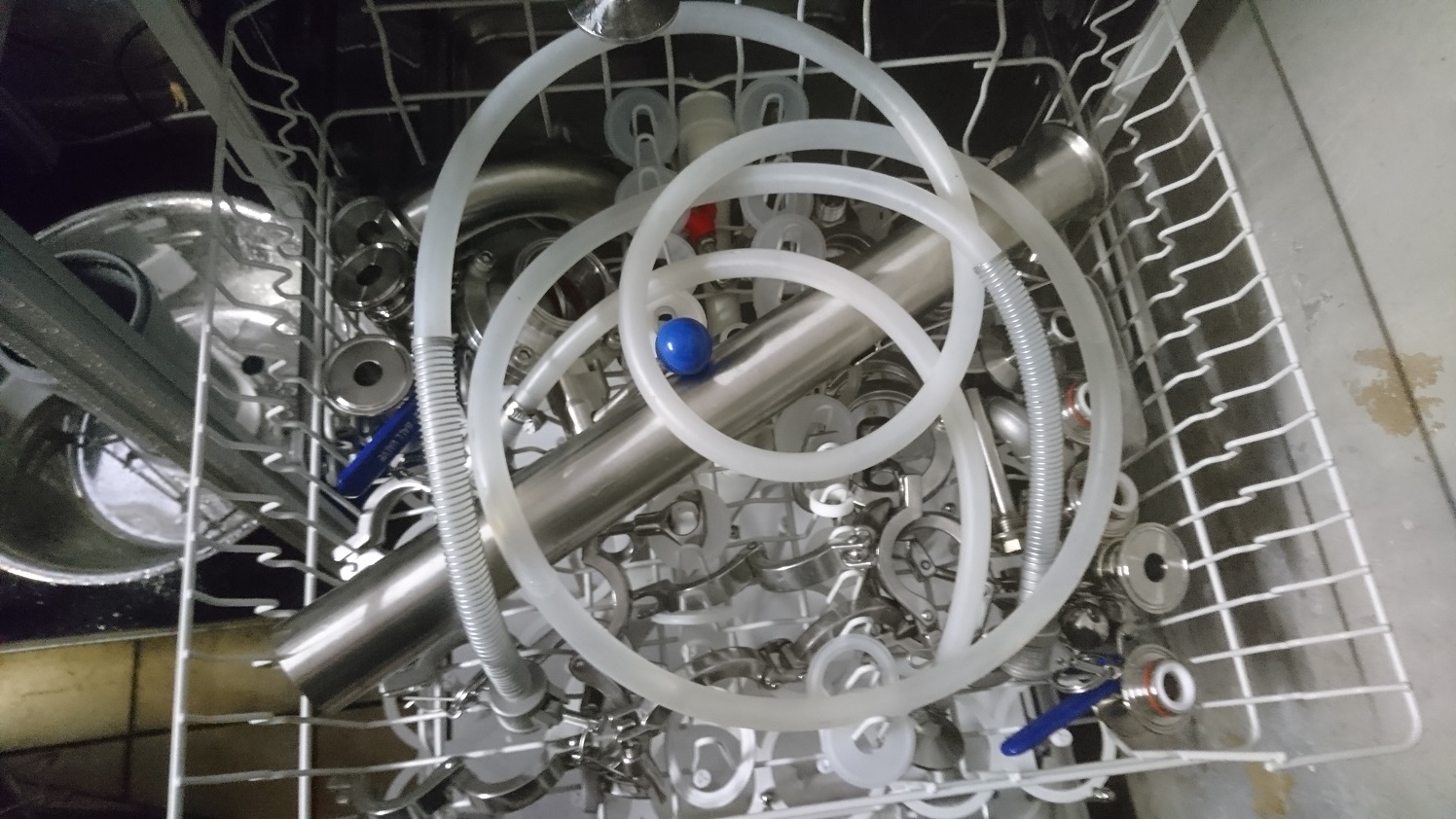 Zum Glück steht im Braukeller eine Spülmaschine. Ich wüsste sonst nicht, wer das alles bis dahin reinigen würde. :puzz