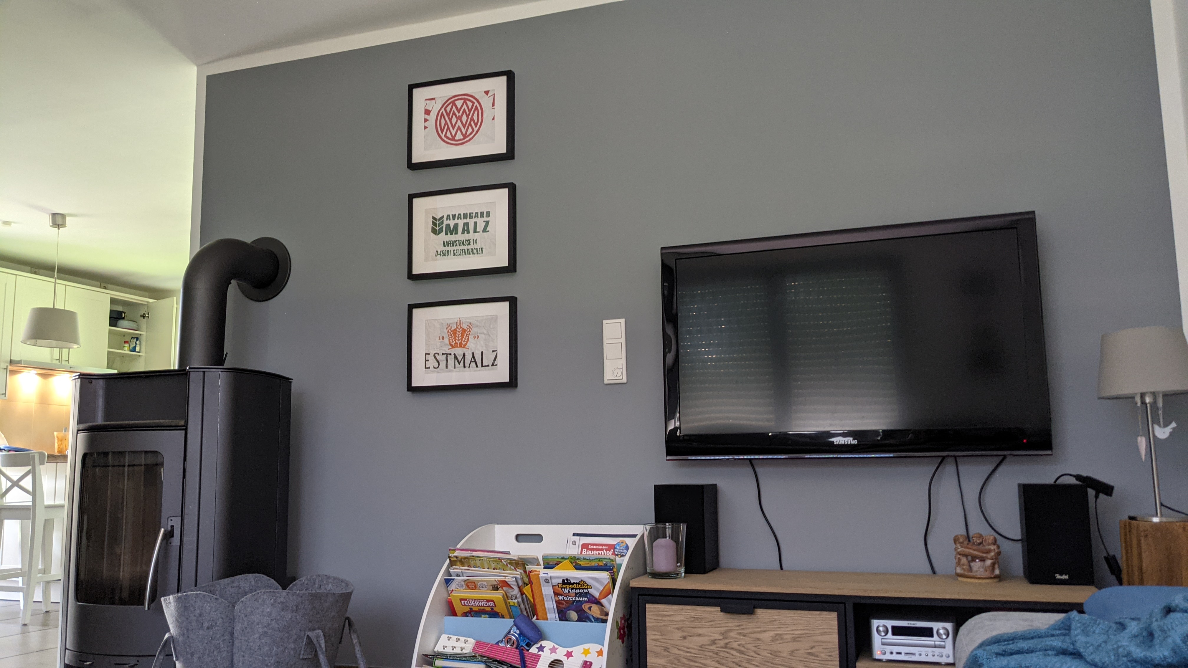 Ich hab tatsächlich ein paar Logos im Rahmen an der Wand im Wohnzimmer hängen. Finde ich ganz cool...