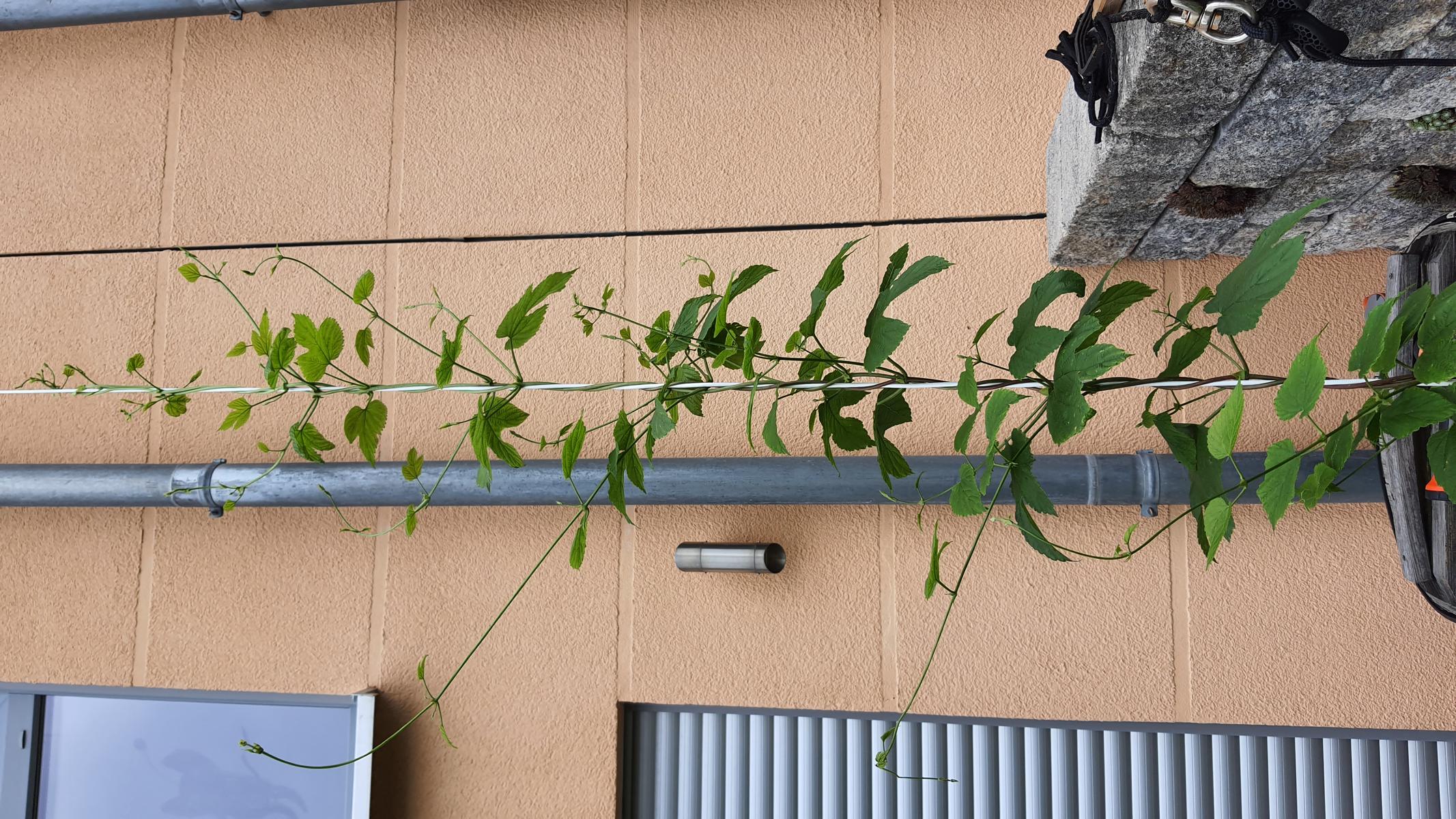 Quer mag der Hopfen nicht besonders gerne, und runter hängen gar nicht.