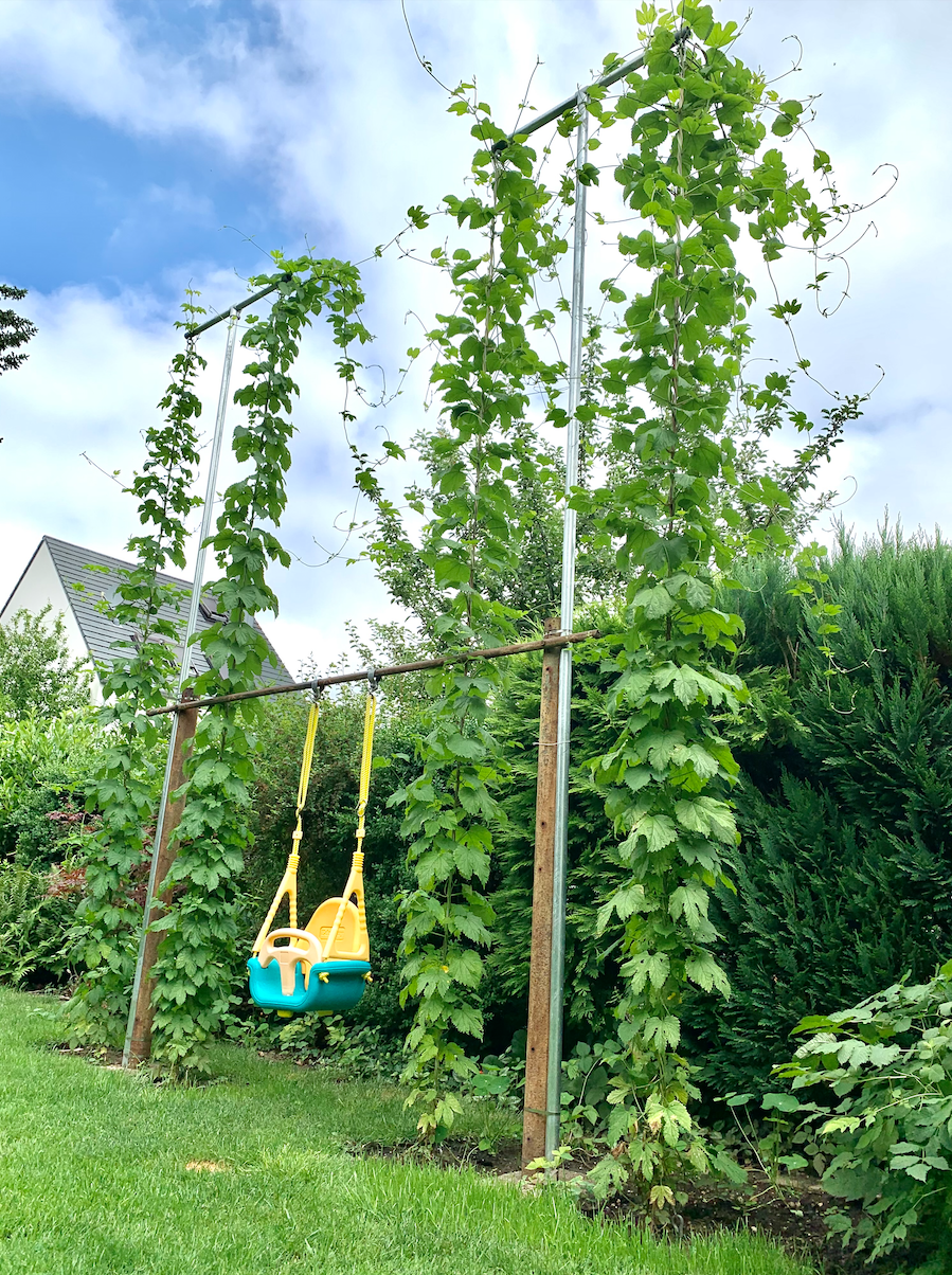 Quer mag der Hopfen nicht besonders gerne, und runter hängen gar nicht.
