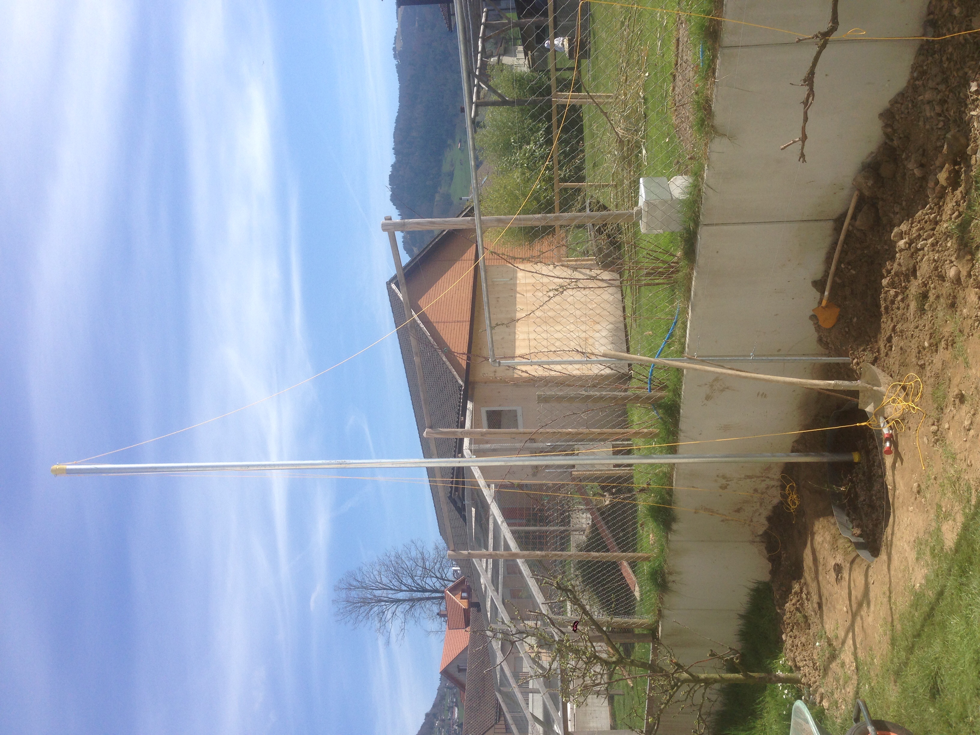 Denke dann werde ich ein Drahtseil von der Fahnenstange runterhängen, damit sich die Pflanzen gut halten können.