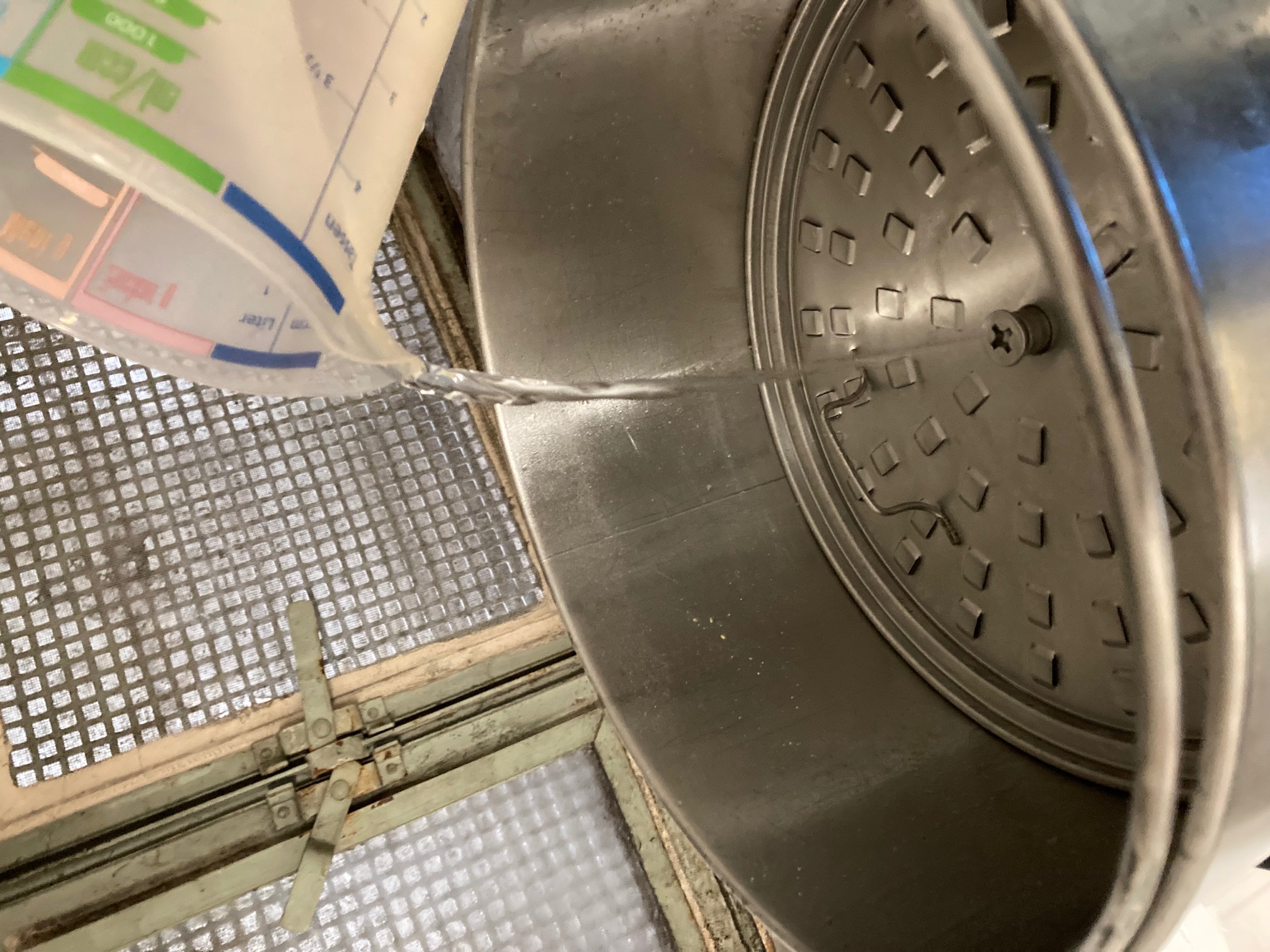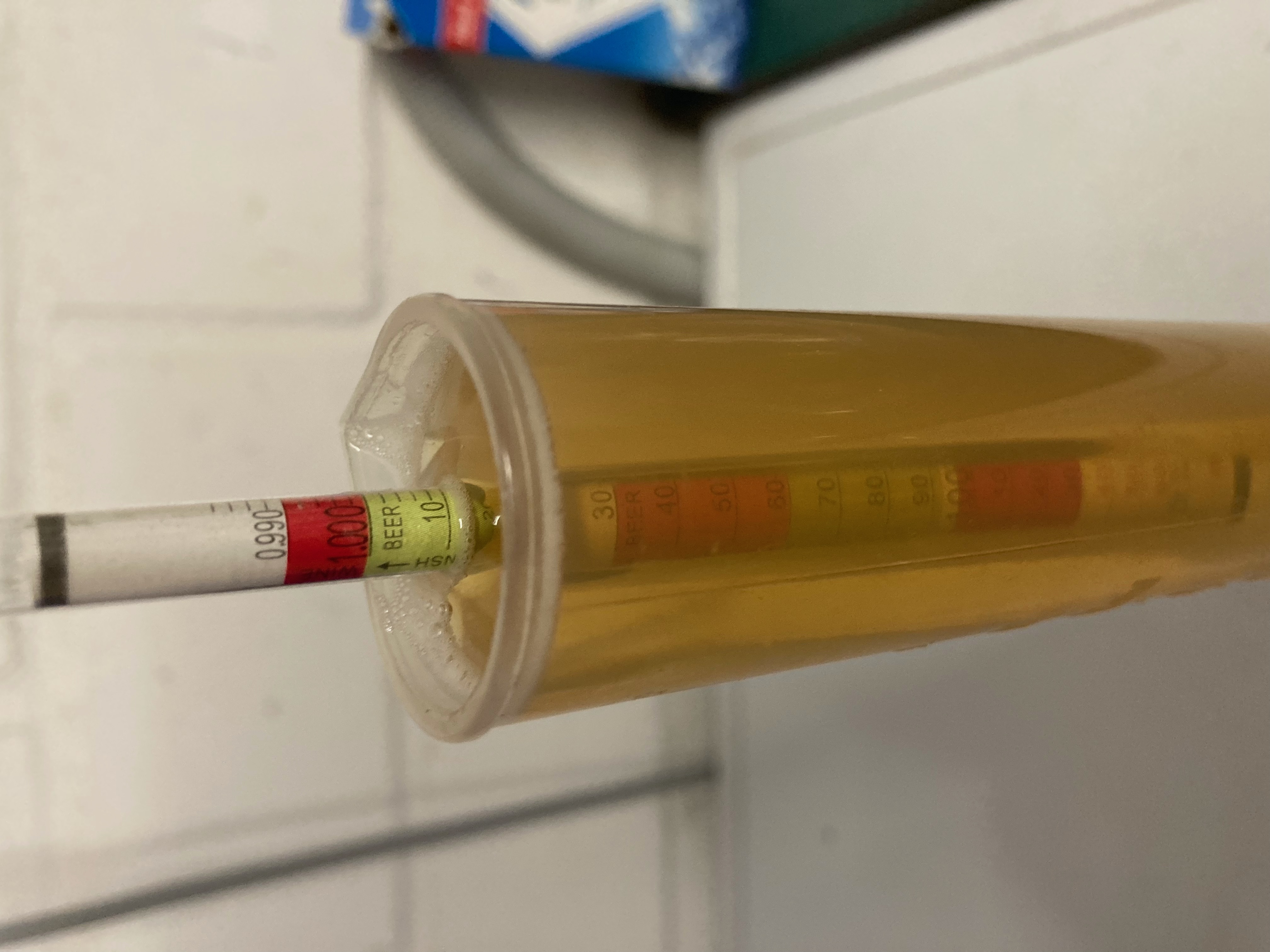 Die Spindel (meine liest man Plan zur Oberfläche ab) zeigt ebenfalls 1.046 (Foto folgt) Aus dem Treber konnte ich im Nachgang wieder drei „Propper starter“ extrahieren (1,5l)