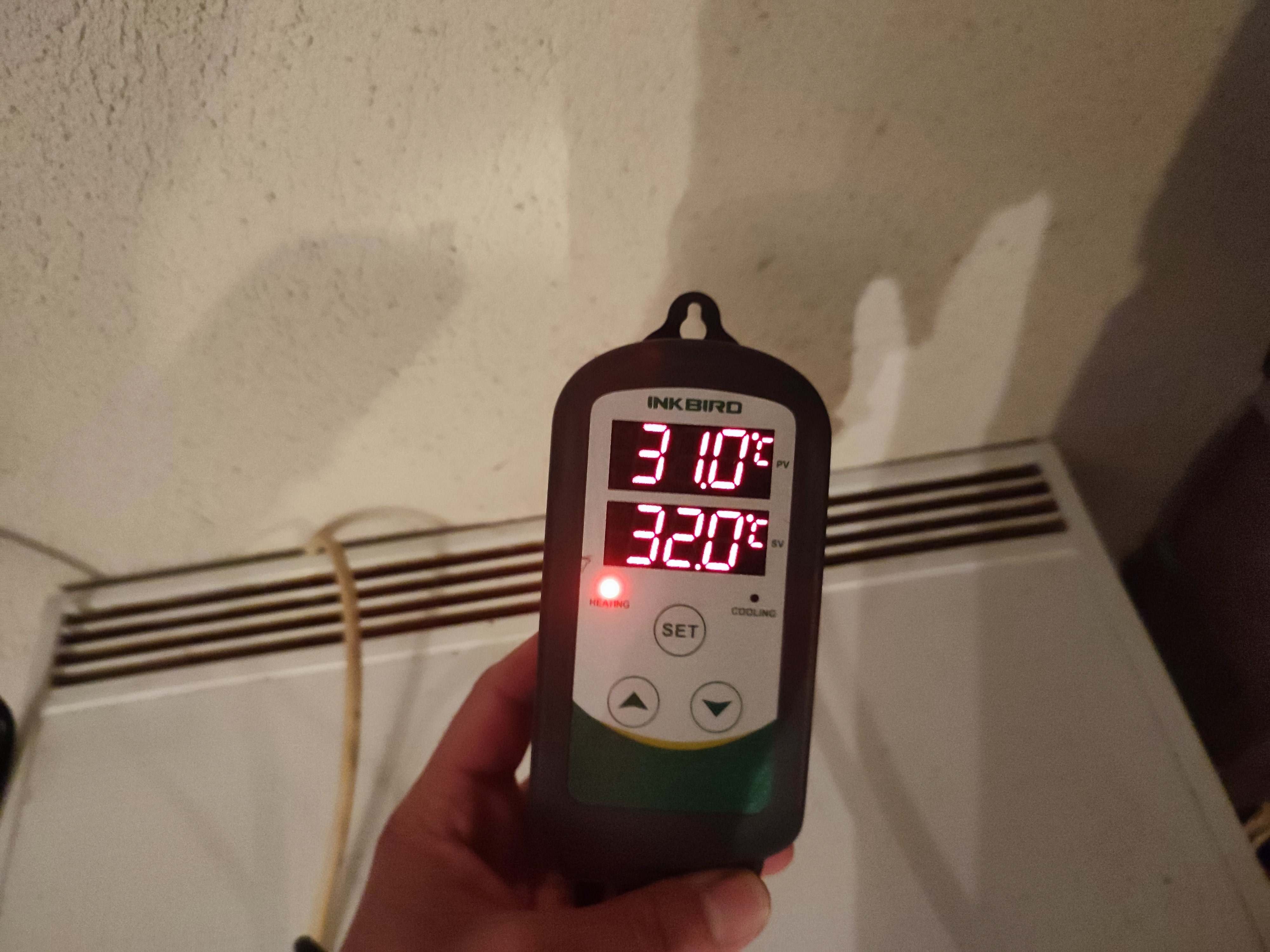 Also schnell noch ein Inkbird und Terrariumheizkabel beim großen Fluss bestellt und den Gärschrank auf 32°C eingestellt