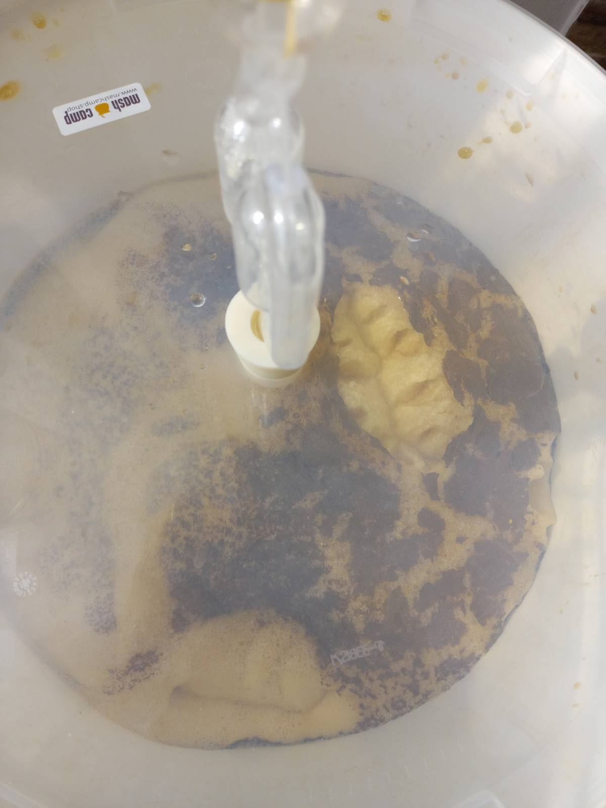Eine Frage an die Sauerbier-Experten: Beim Apricot Sour werden immer wieder kleine Fruchstücke nach oben getrieben (siehe "bauschaumartige" Kräusen auf dem Foto); war anscheinend nicht fein genug püriert. Würde eigentlich gerne Eingriffe wie Unterühren vermeiden, bin nun aber nicht sicher, ob da nicht ansonsten ein Schimmelrisiko besteht. Hat wer Rat?