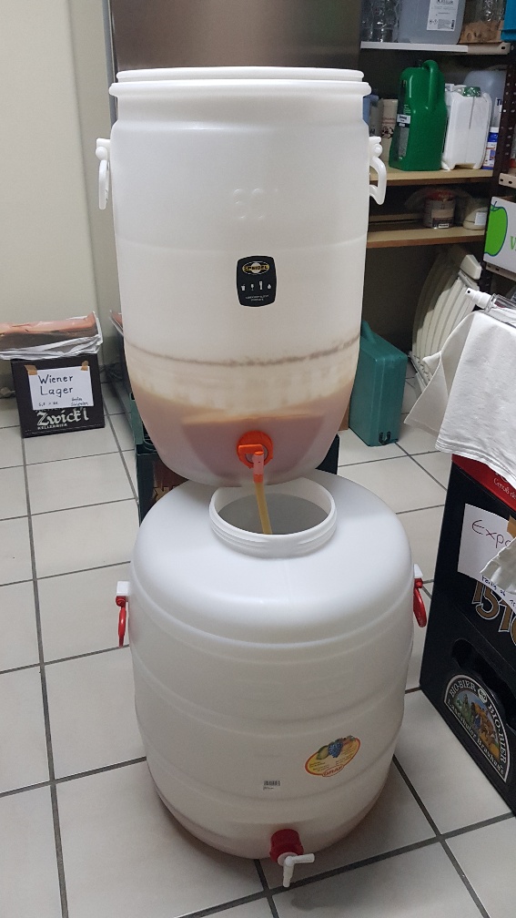 Fürs hochheben des vollen Fasses (nach dem Umschlauchen) zum Abfüllen bin ich noch auf der Suche nach einer Lösung. Die 50L zu zweit auf die Küchenarbeitsplatte wuchten macht keinen Spaß...