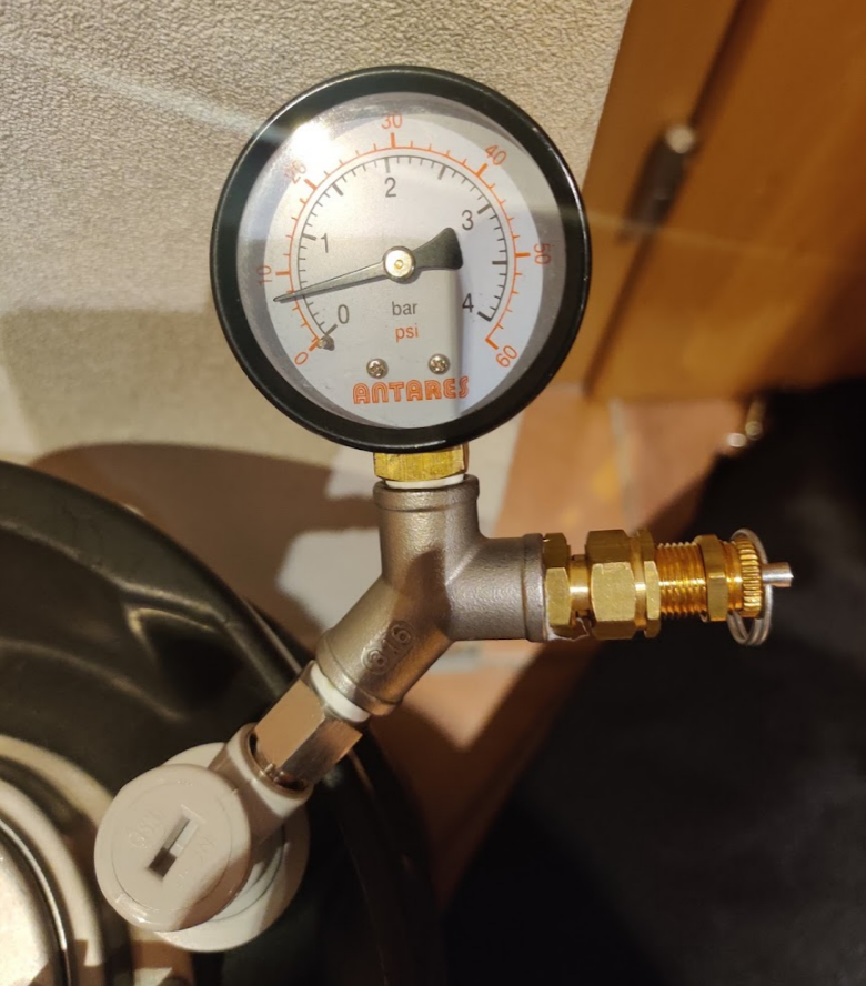 Dem Manometer auf dem Spundventil traue ich nur bedingt, allerdings hat der Unitank ein genaueres Manometer verbaut, welches ich zur Kontrolle verwende. Beide Manometer haben bei 1,3 Bar eine Abweichung von knapp 0,1 Bar...