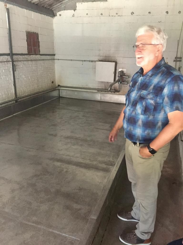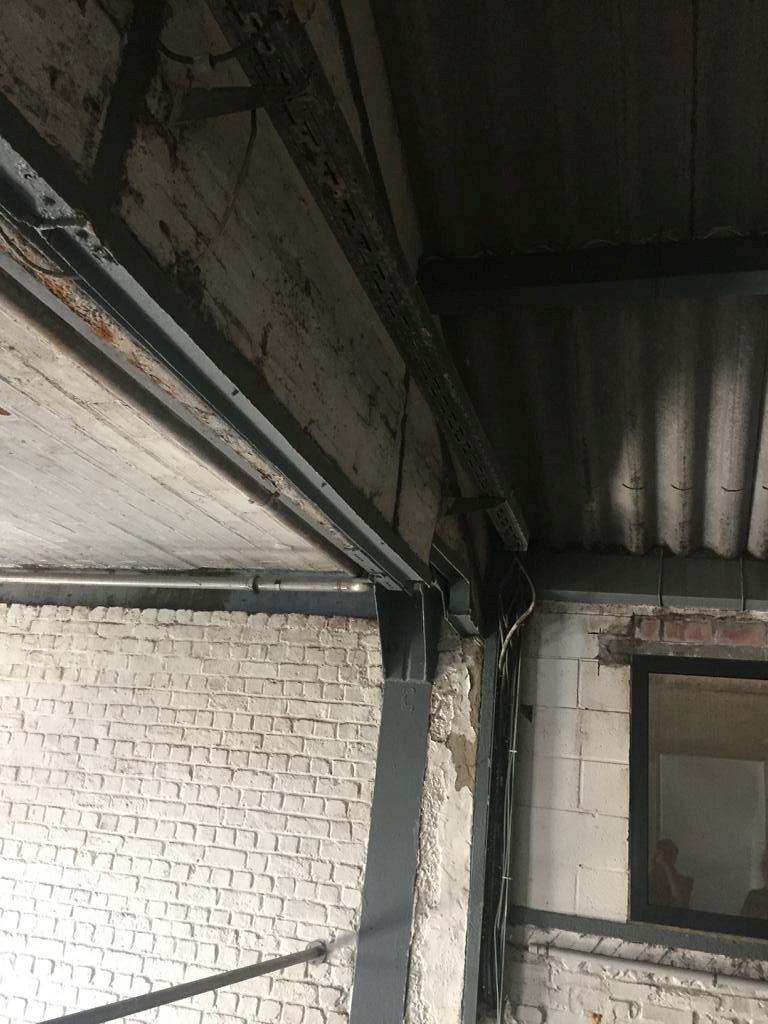 Das Kühlschiff jedoch, steht noch im Rest der vorher dort befindlichen alten Brauerei unter einem verdreckten, spinnenwebbehangenen Wellasbestdach. Die alte Brauerei wurde an dieser Stelle teilweise durch die neue Halle überbaut, auch das Kühlschiff selbst ist neu. Aber der Raum drumherum ist halt noch "original". Es wäre sicher einfacherer gewesen, das komplett zu erneuern.
