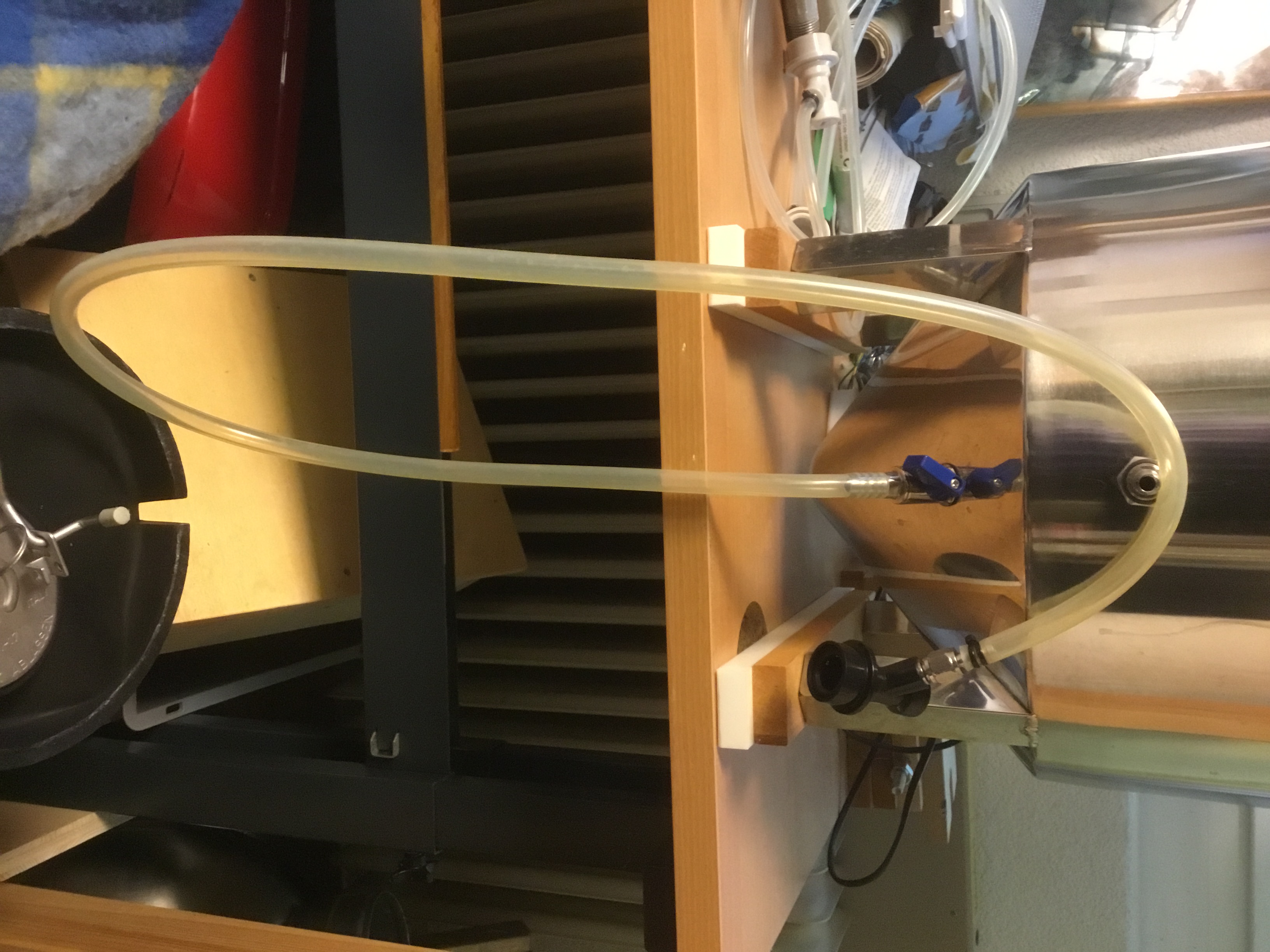 bin etwas genervt von den Öffnungen des Brew Bucket. Nun wäre meine Idea das bereits vorhandene Loch des Brew Buckets zu nutzen und dort einen NC Anschluss zu installieren welcher mittel NC Gas- Kupplung und schlauch in ein Gefäß mündet.