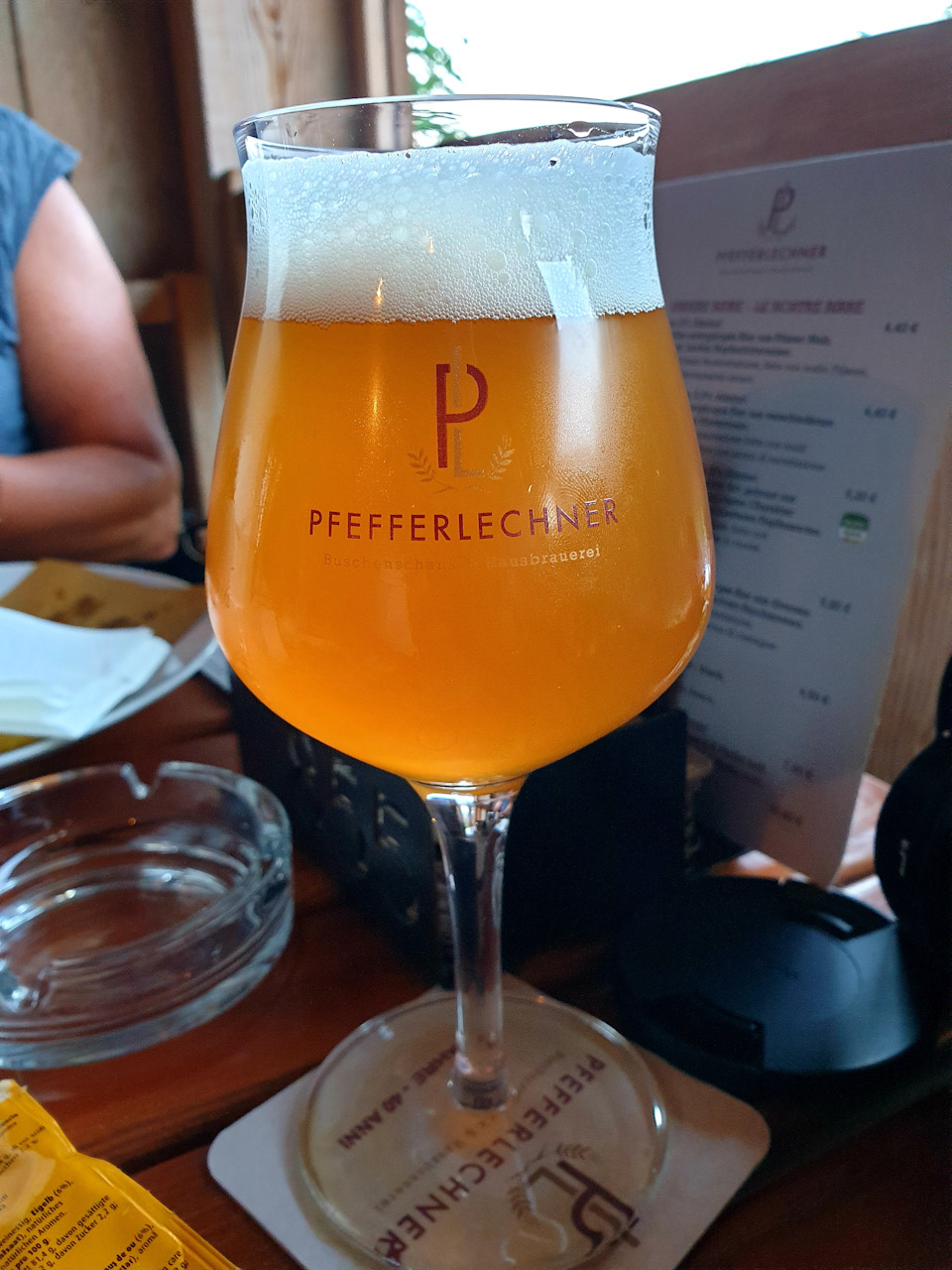 Gestern ging es zum Geburtstagsessen in den Pfefferlechner Biergarten in Lana (Südtirol). Zur Haxen gab es ein sehr süffiges und leckeres naturtrübes Helles. Danach ein Pale Ale. Leider wurden keine Angaben zum Hopfen gemacht. Geschmacklich war es gut. Ich tippe auf Citra. Aber in der Nase war leider ein leichter käsiger Geruch. Der Hopfen war wohl nix mehr. Letztes Mal war das auf jeden Fall besser.