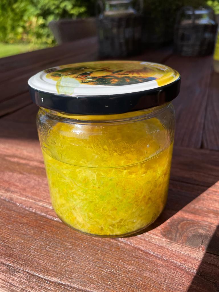 Zur Vorbereitung habe ich eine Essenz aus ca.25 Gramm Zitrusschalen gemacht. Ich habe dafür eine Zitrone, eine Limette und eine Orange genommen und die Schale geraspelt. Die abgeriebene Schale habe ich dann für ca. drei Wochen in Doornkaat eingelegt. Der Doornkaat ist ein Tipp von meinem Braukumpel "der Nordmunder". Doornkaat wurde früher in unserer Heimatstadt Norden hergestellt, ist dreifach gebrannt und passt perfekt dazu.