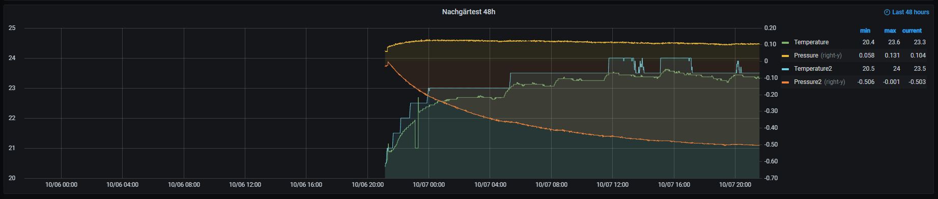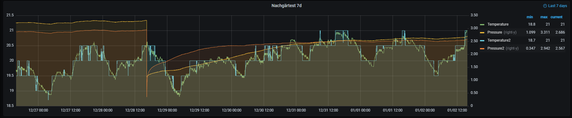 Braufex hat geschrieben: Montag 15. November 2021, 23:04 Interessant, wie parallel die beiden Druckverläufe sind und bleiben. Und wie sauber man die Tag/Nacht-Temperatur- und Druck-Schwankungen sieht.