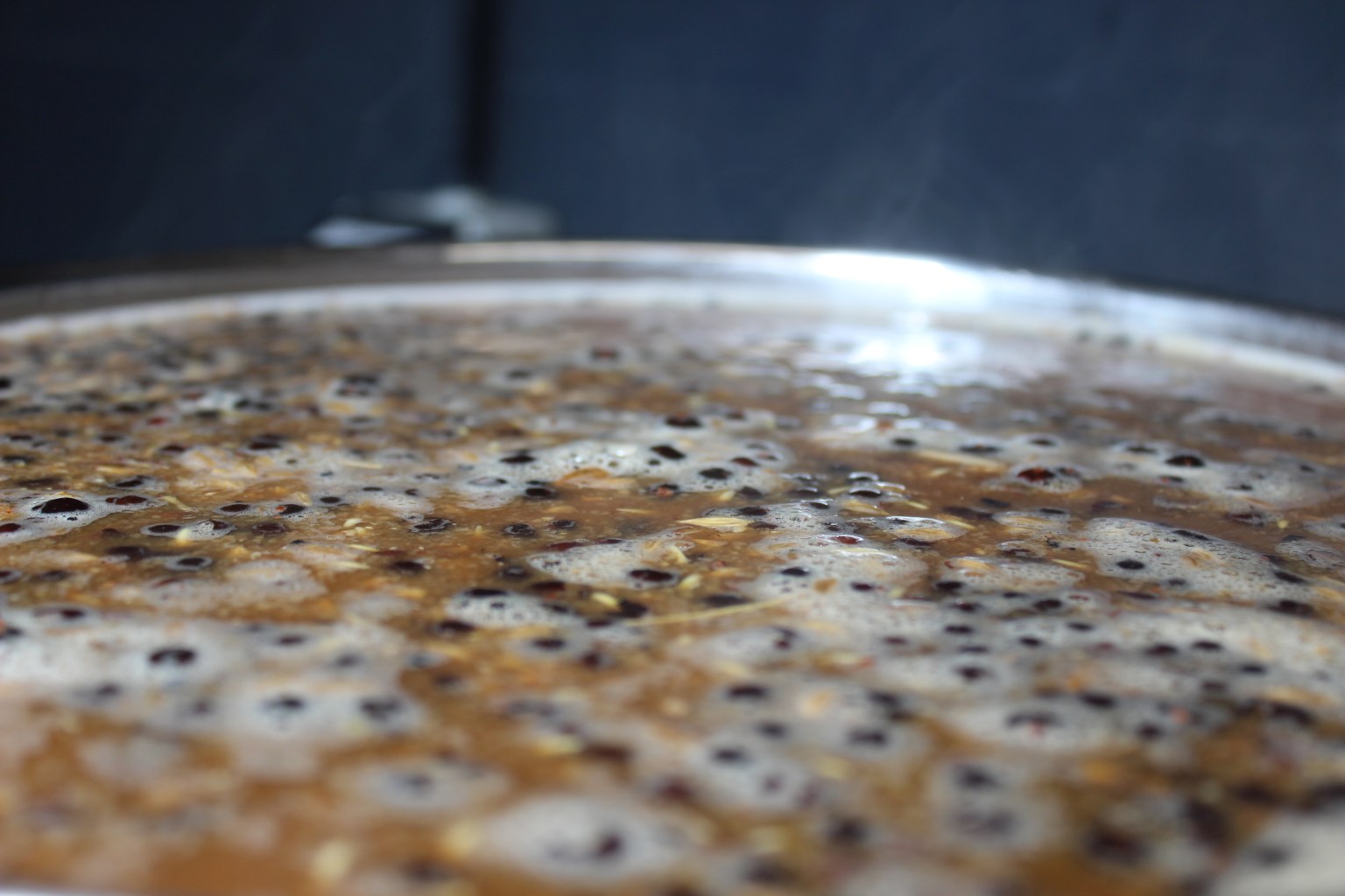 Beim Kochen kommen dann erneut Wacholderbeeren hinein. Und zwar wieder 114g. 50% zu Beginn und 50% bei flameout. :Ahh